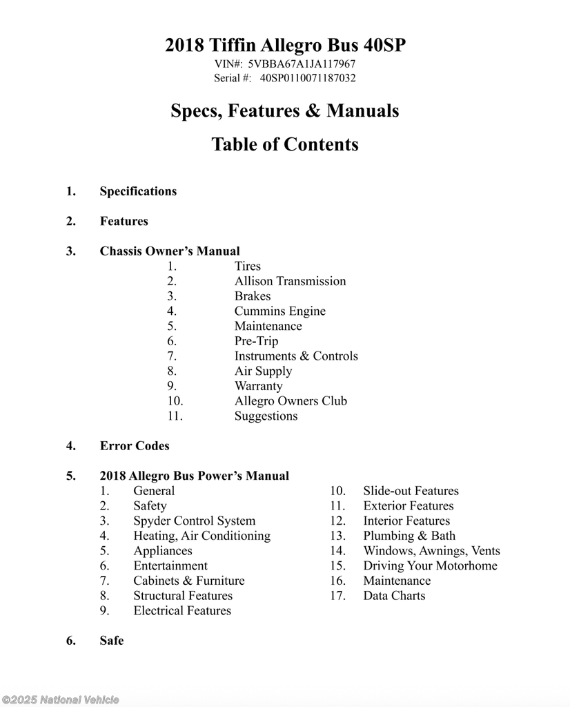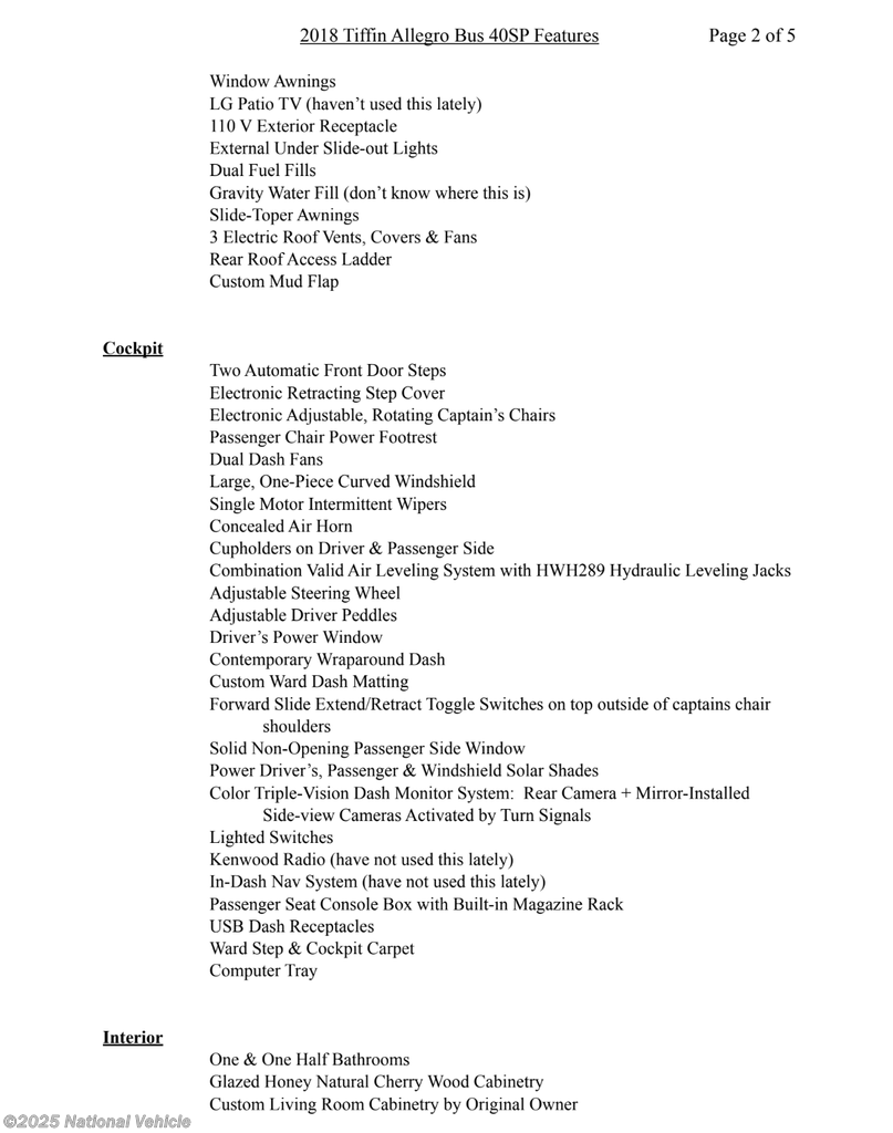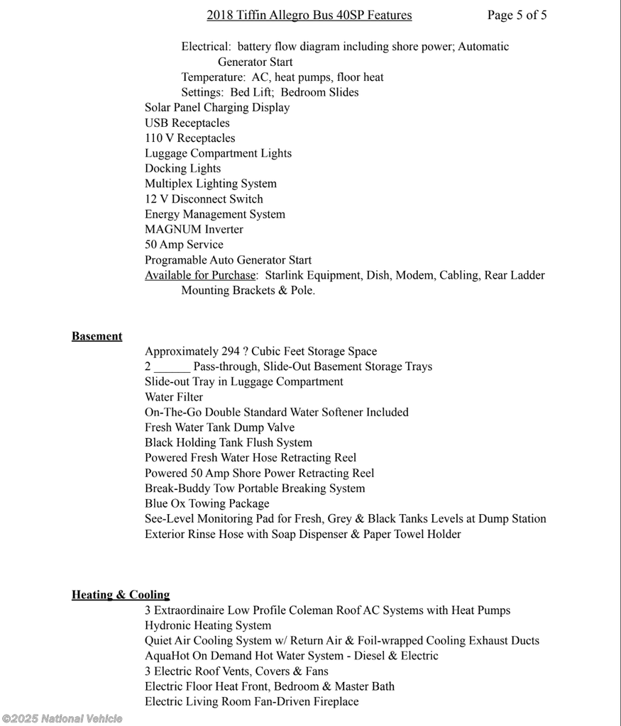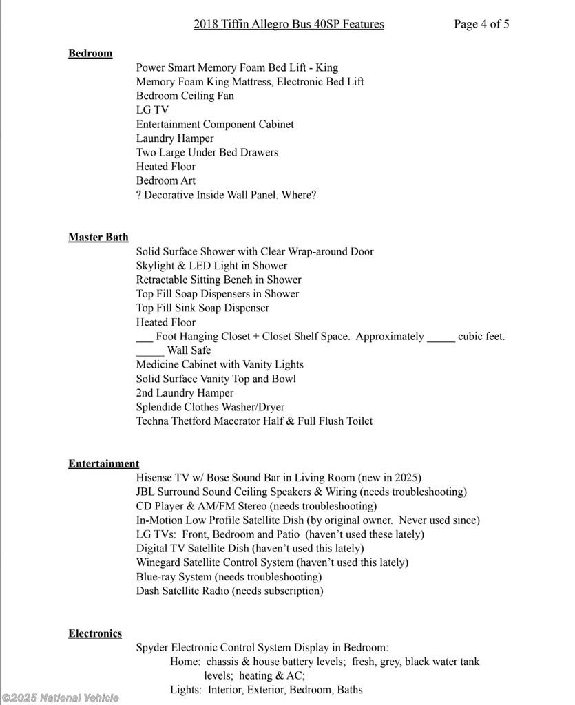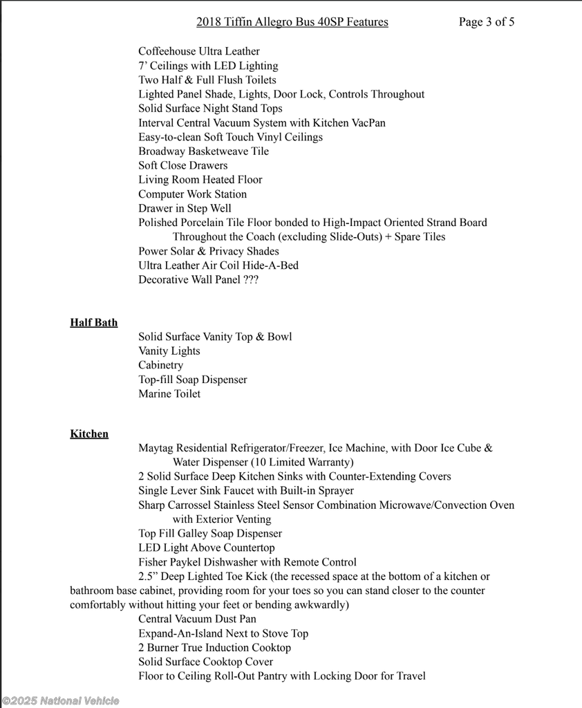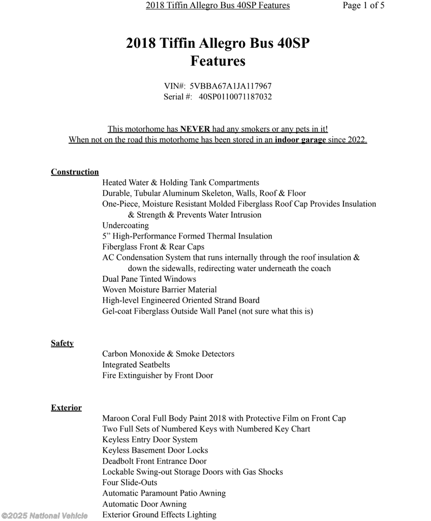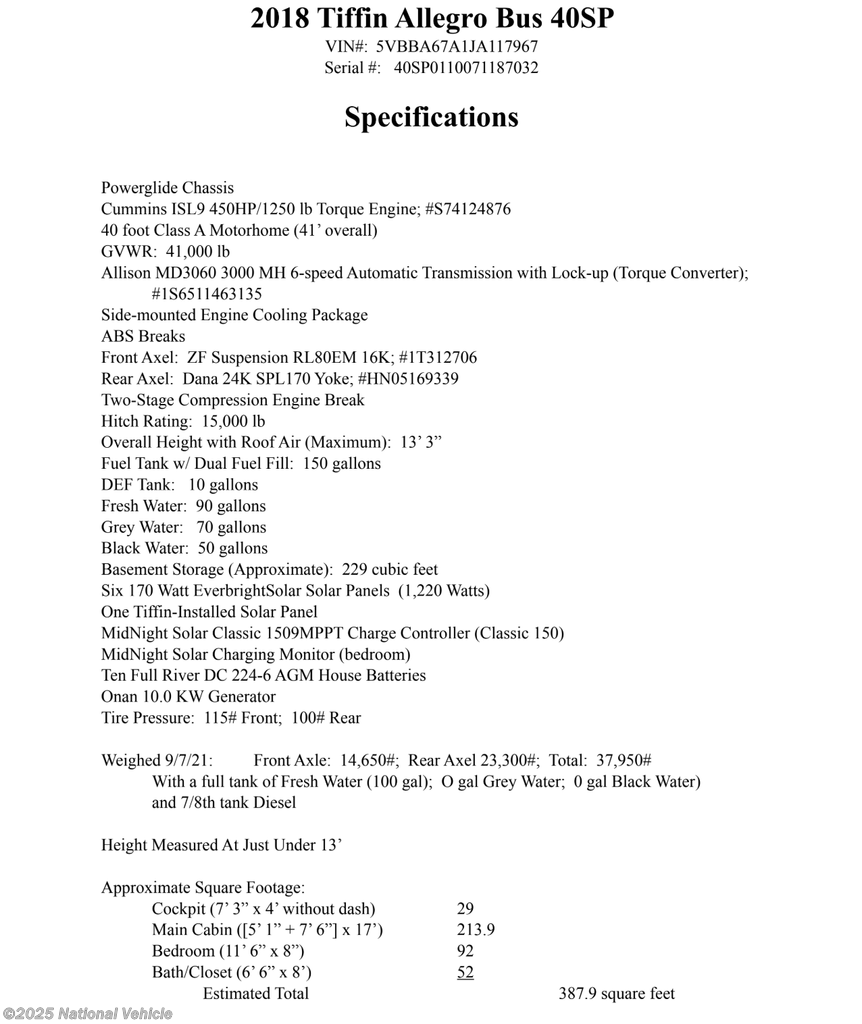 Request More Info on this 2018 Tiffin Allegro Bus 40SP Offered for sale by National Vehicle
