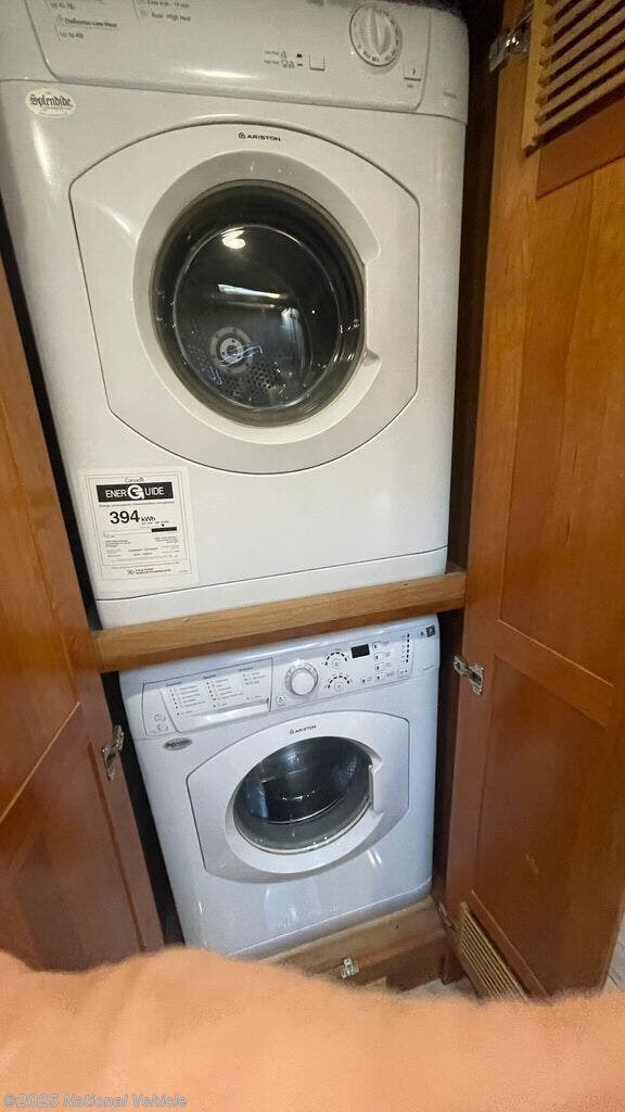 Rear master bath: solid surface shower w/ seat, double vanities, macerator toilet, Splendide washer/dryer