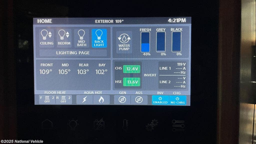 Spyder Multiplex Control System for lighting, HVAC, slides, shades, generator, and monitoring tanks/batteries