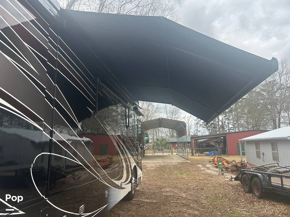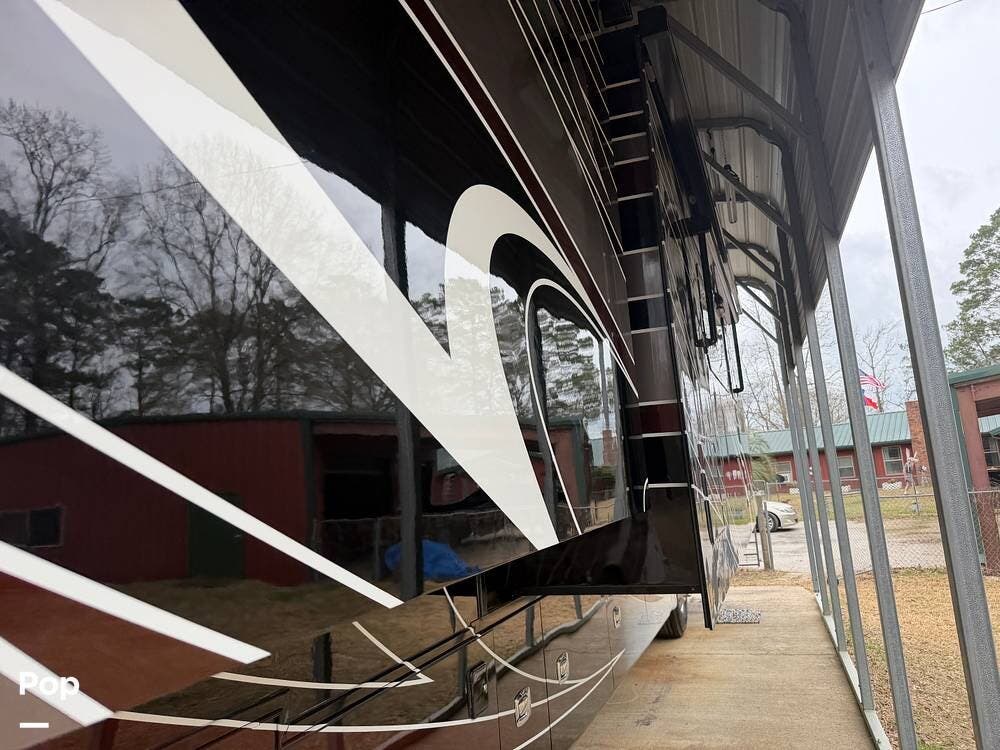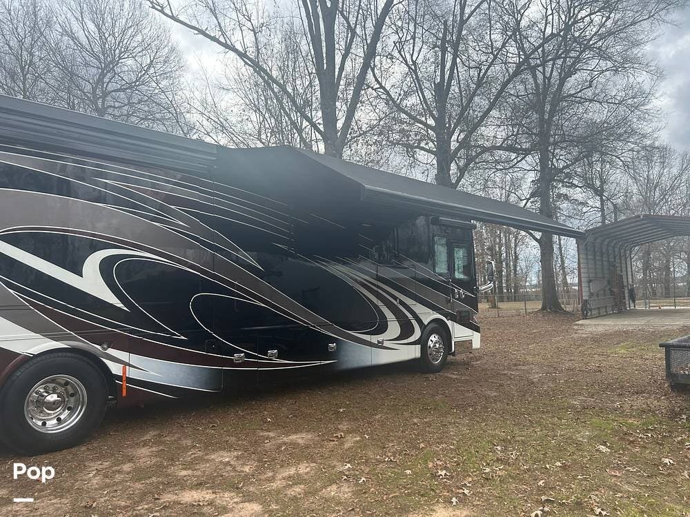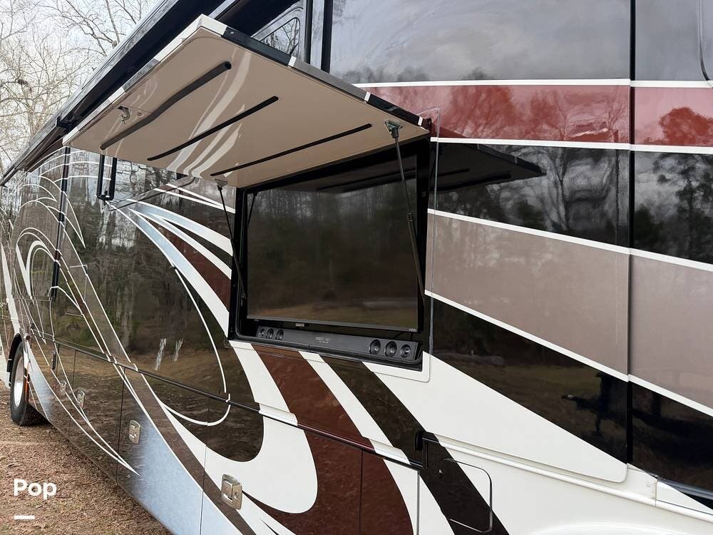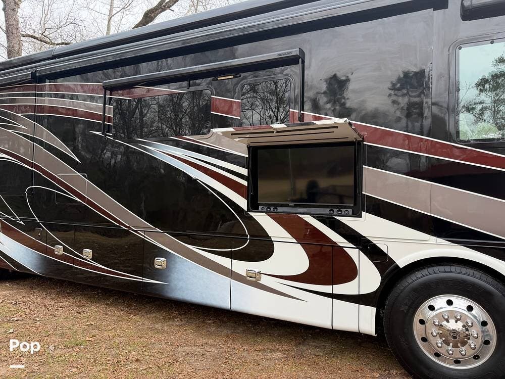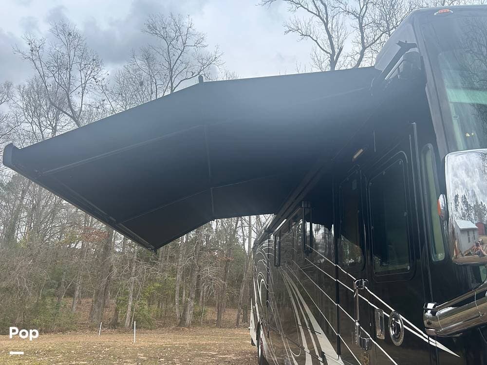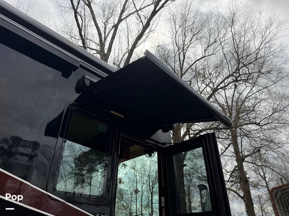 Additional highlights include multiple A/C units, a generator, power awnings, an exterior entertainment center, backup and side-view cameras, and abundant basement storage.