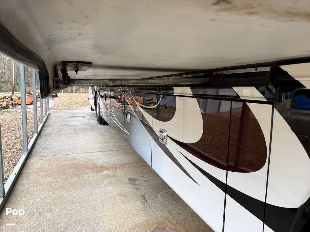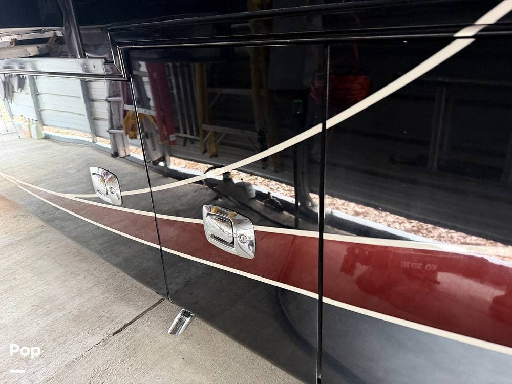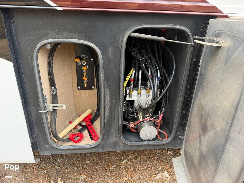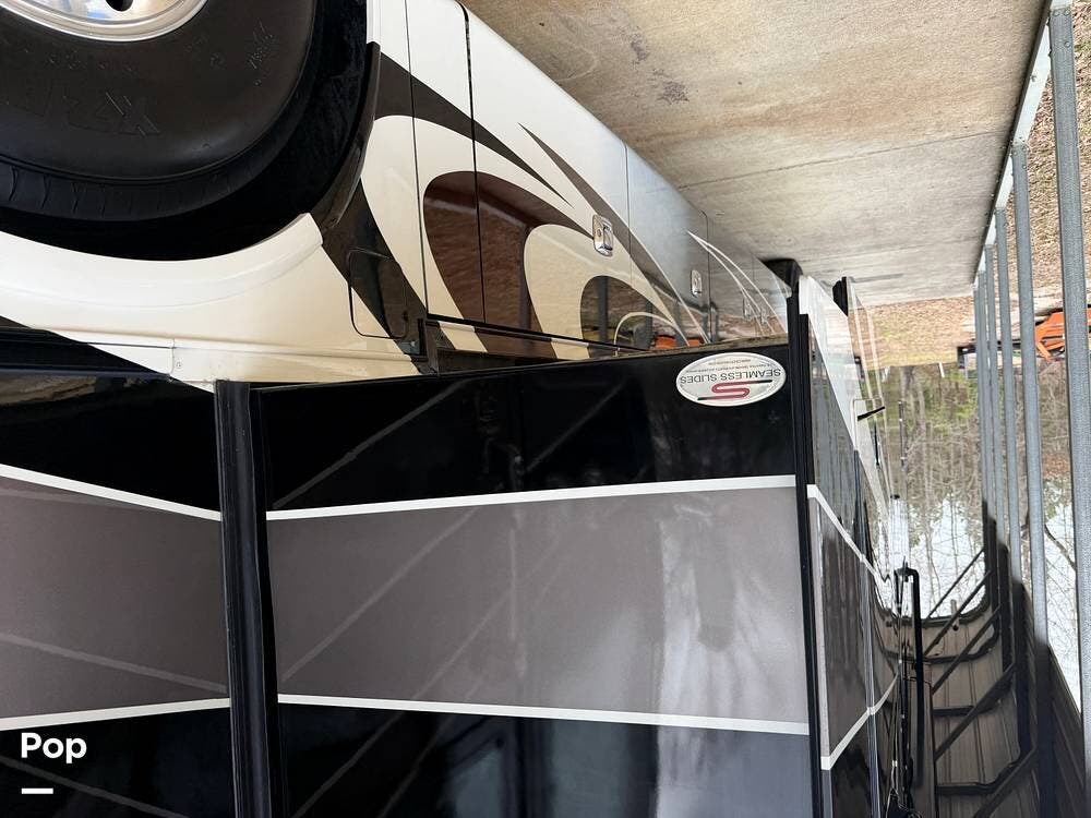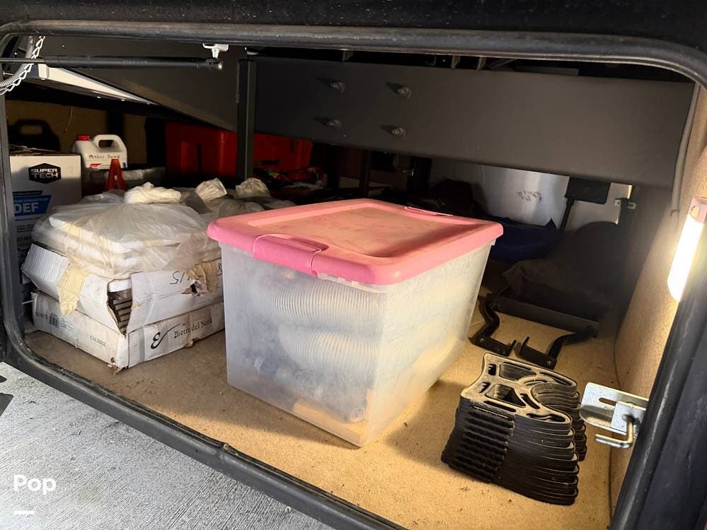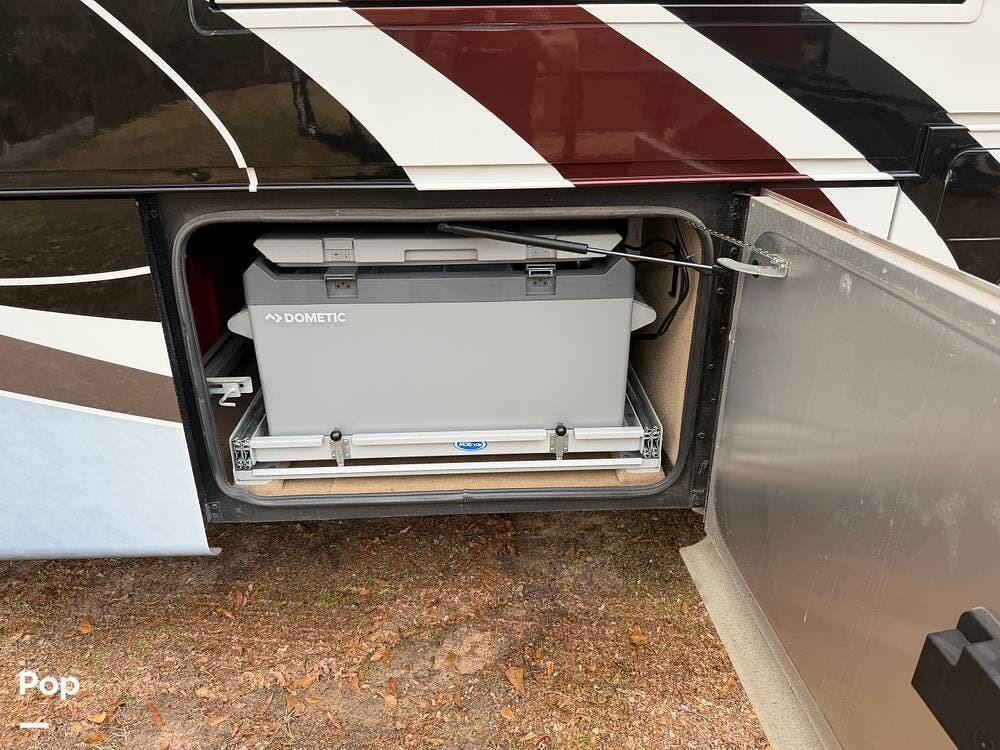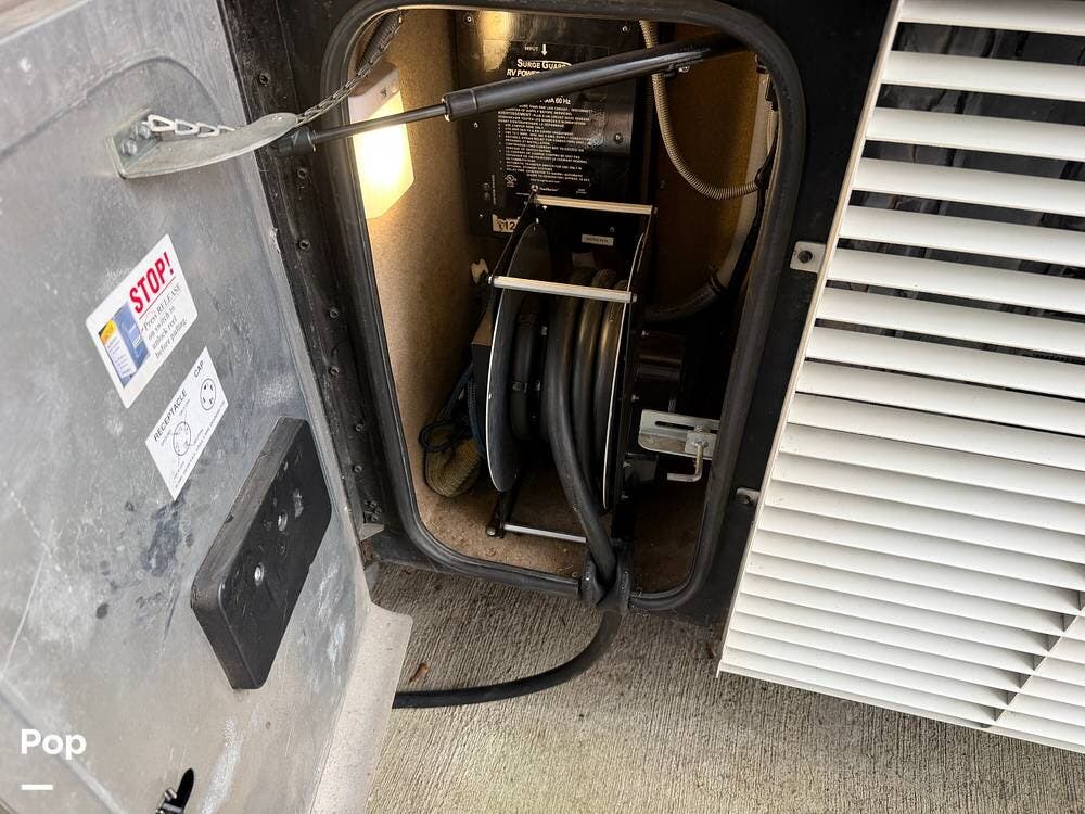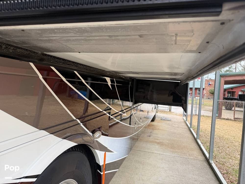 Additional highlights include multiple A/C units, a generator, power awnings, an exterior entertainment center, backup and side-view cameras, and abundant basement storage.