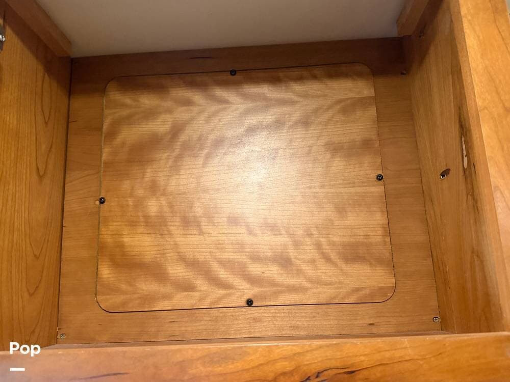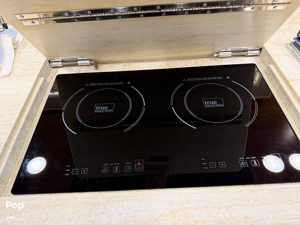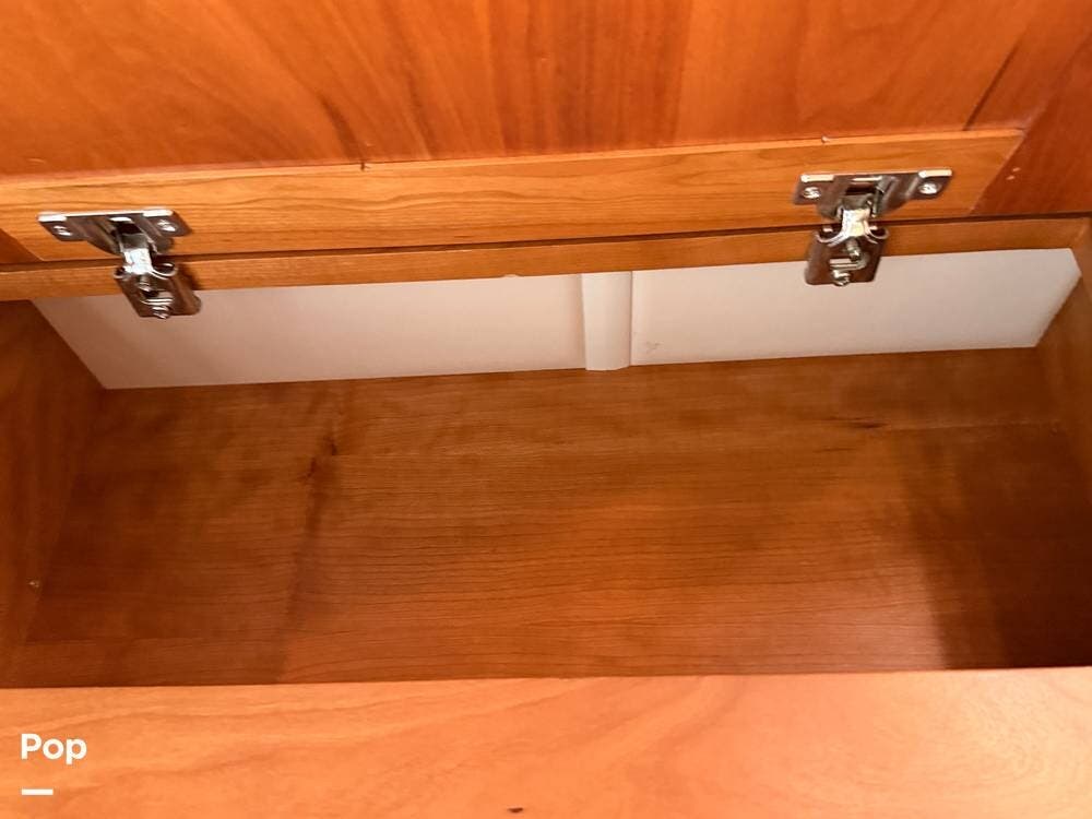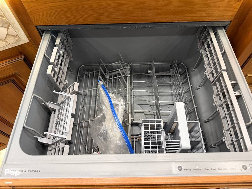 Among the cool features in the kitchen area is a handy pull-out cabinet that tucks away and locks when not in use, and a large pull-out pantry.