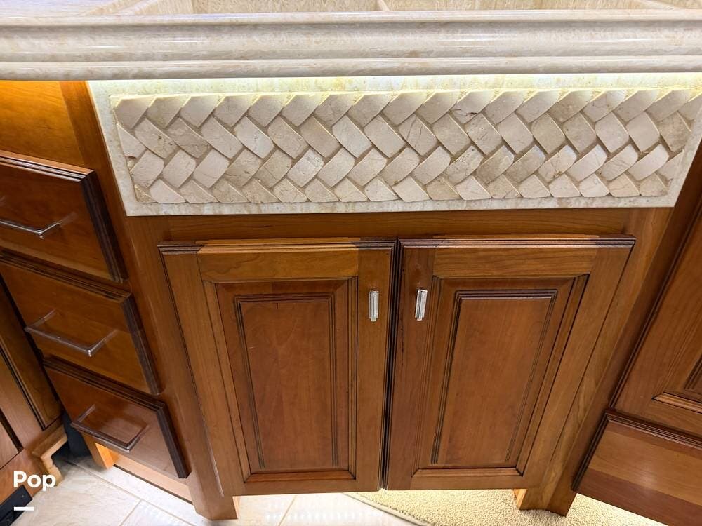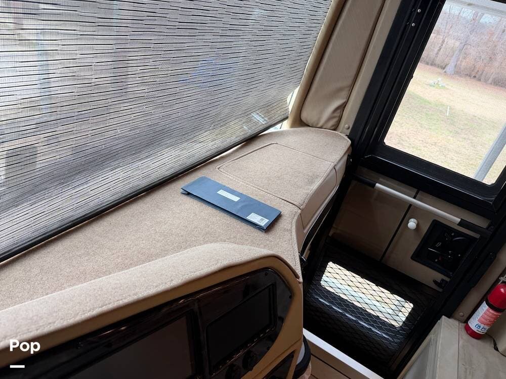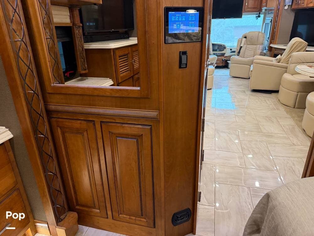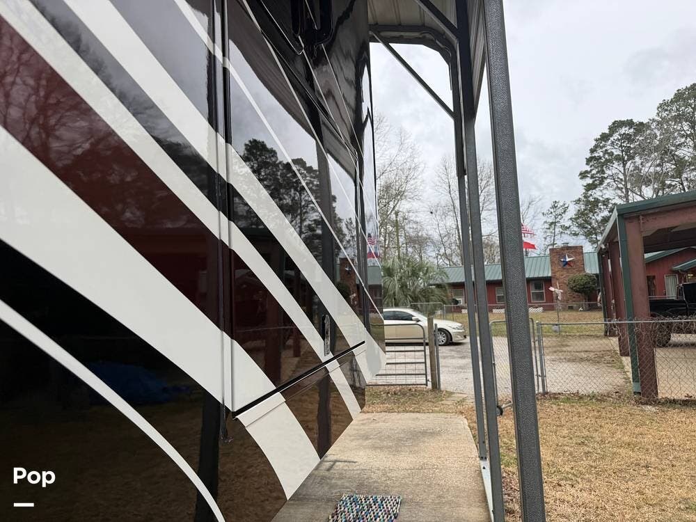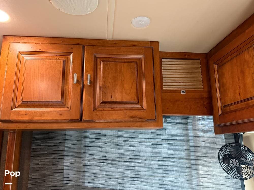 Inside, you'll find premium hardwood cabinetry, polished tile floors, solid-surface countertops, and refined finishes throughout. The spacious 4-slide floor plan creates a true residential feel, with a large living area, plush seating, a fireplace, and a big-screen TV--perfect for relaxing or entertaining.