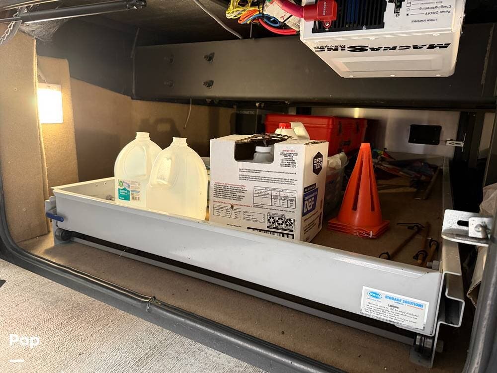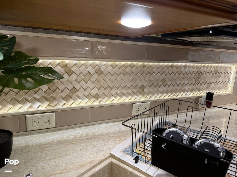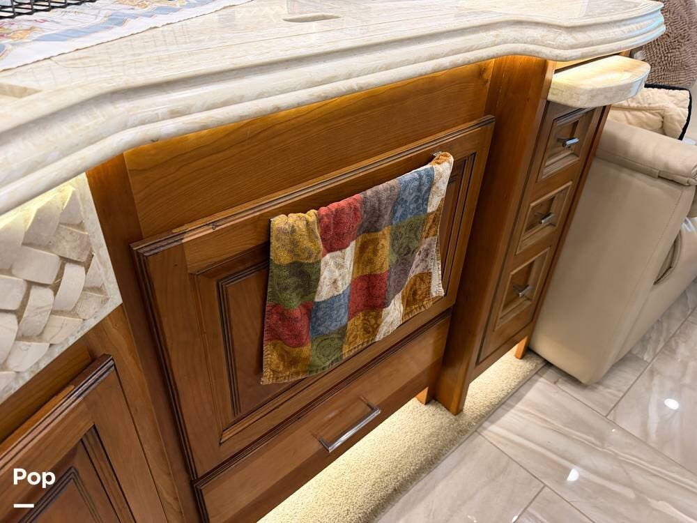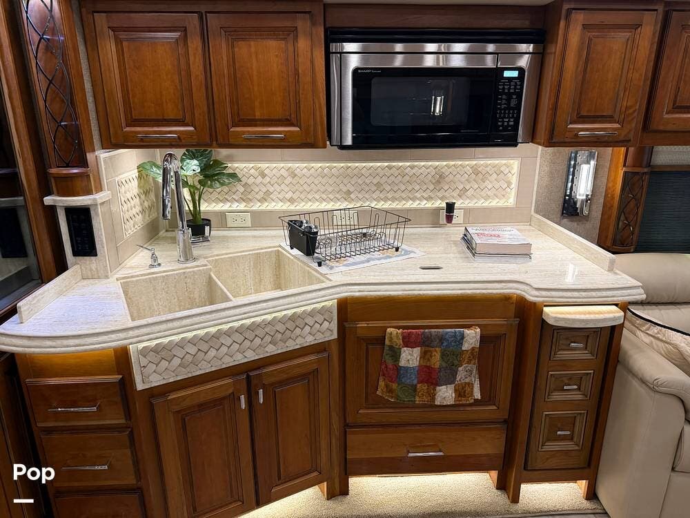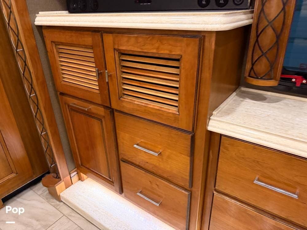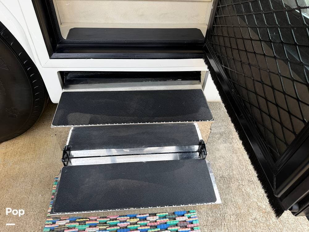 Inside, you'll find premium hardwood cabinetry, polished tile floors, solid-surface countertops, and refined finishes throughout. The spacious 4-slide floor plan creates a true residential feel, with a large living area, plush seating, a fireplace, and a big-screen TV--perfect for relaxing or entertaining.