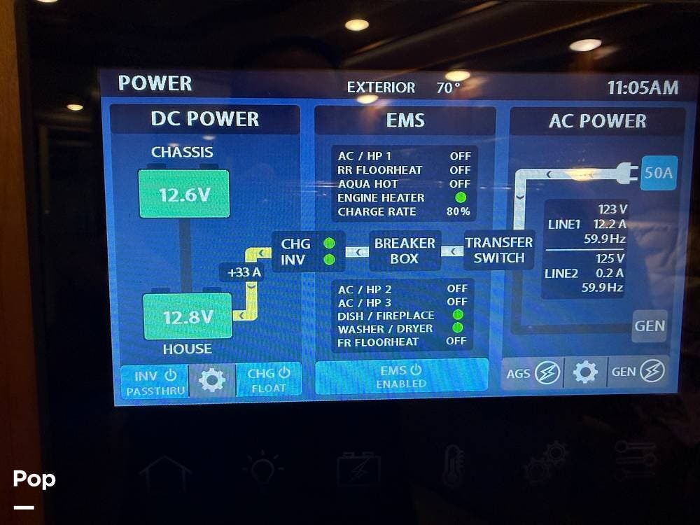 Entertainment options abound, with the rooftop satellite and an in-motion wingard unit, and the GPS has a current SD card for the latest maps.
