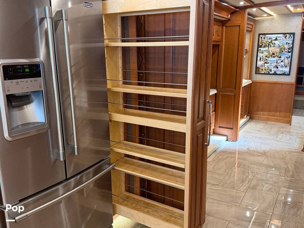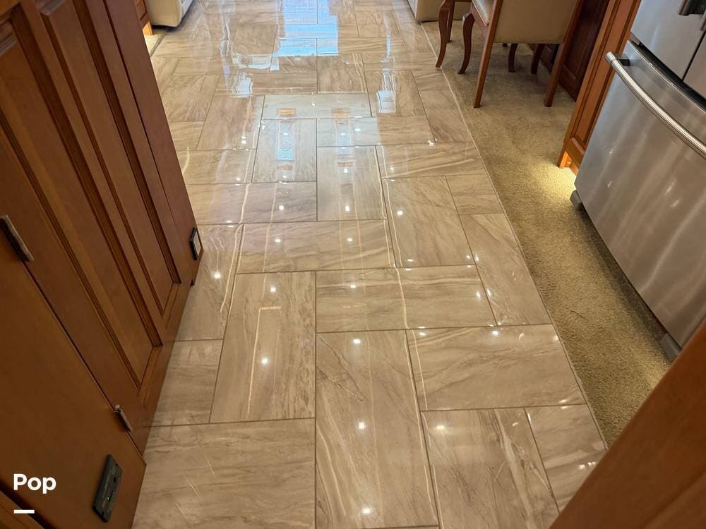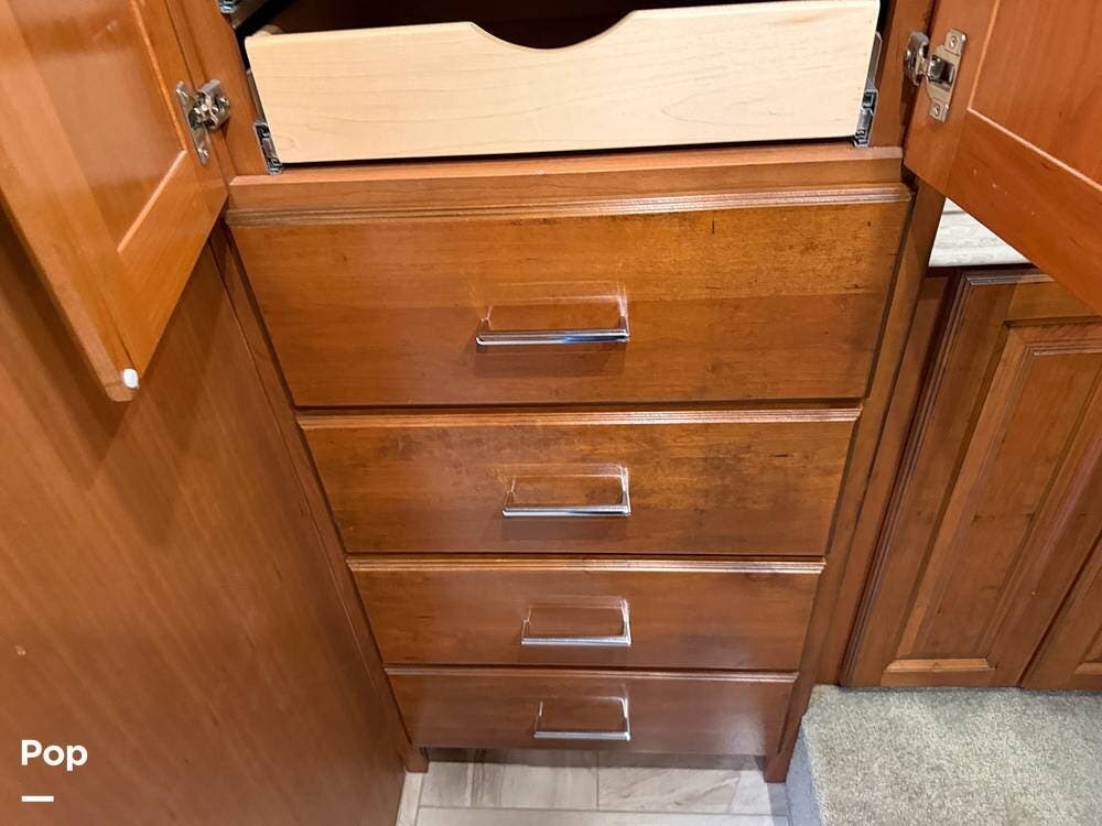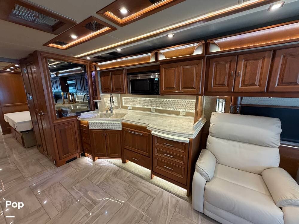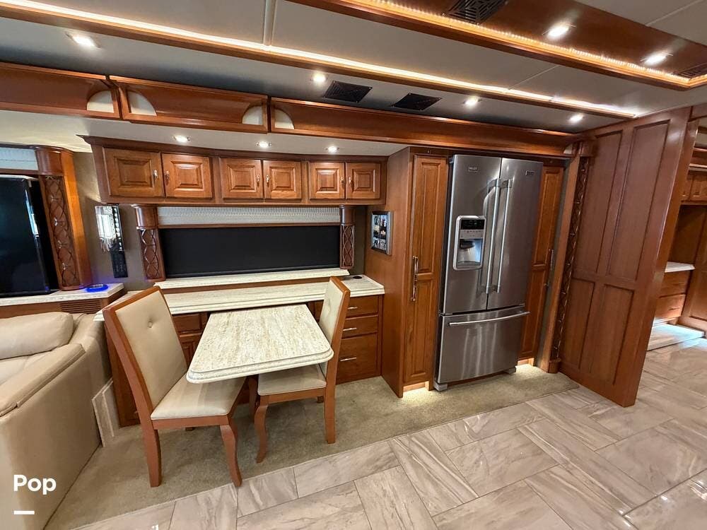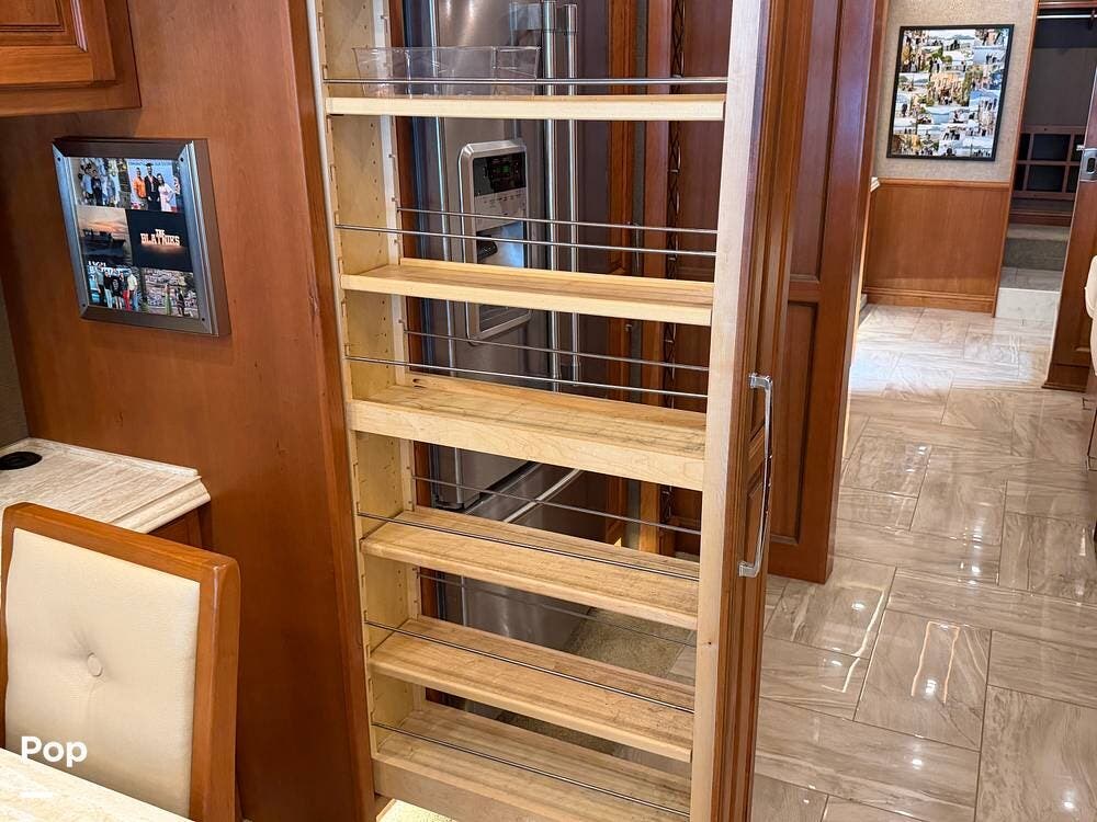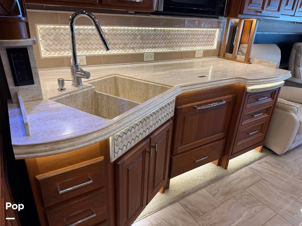 Quality materials, such as real-wood cabinets, solid-surface countertops, and tile floors, give this coach a distinctly residential feel.