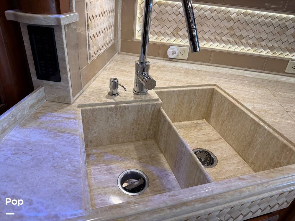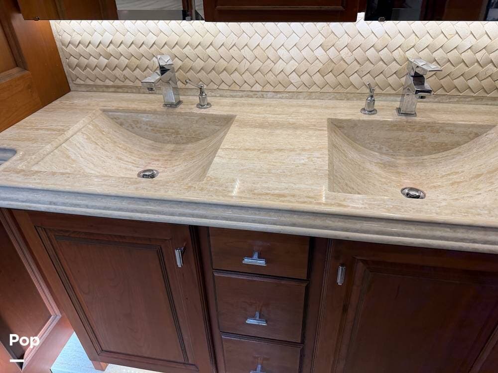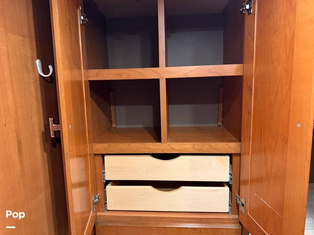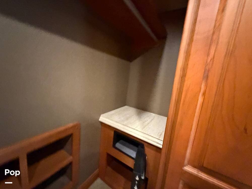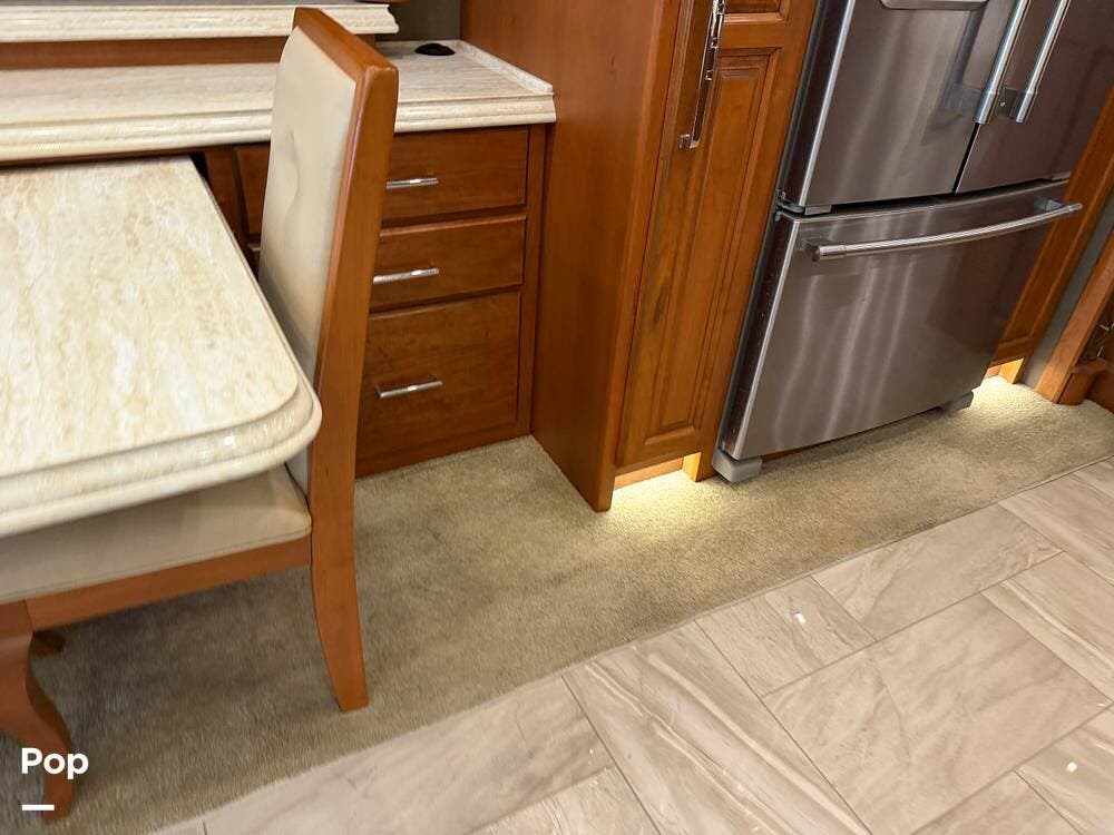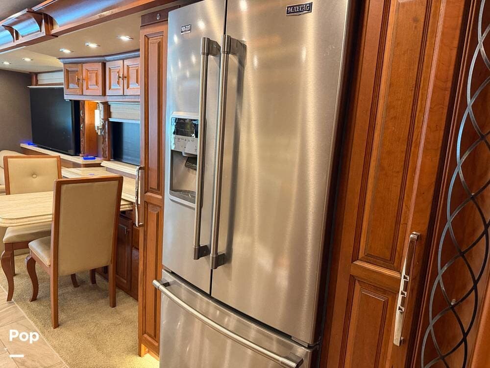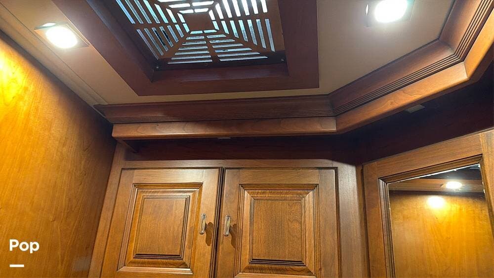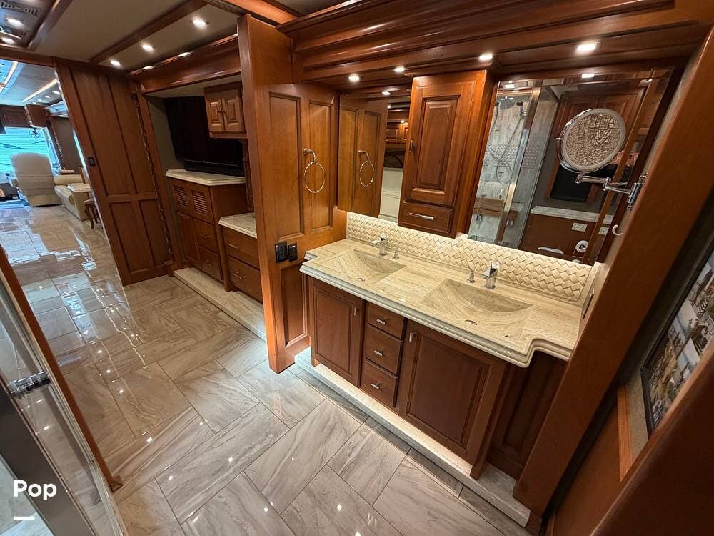 Quality materials, such as real-wood cabinets, solid-surface countertops, and tile floors, give this coach a distinctly residential feel.