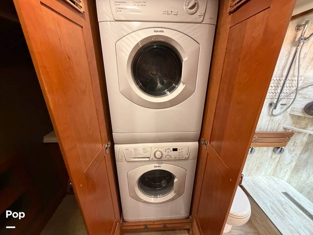 Featuring four opposing slideouts, the interior opens up to a fantastic amount of full-time-friendly living space. With amenities like a stacked washer and dryer and a residential refrigerator, you have all the comforts of home on the road.