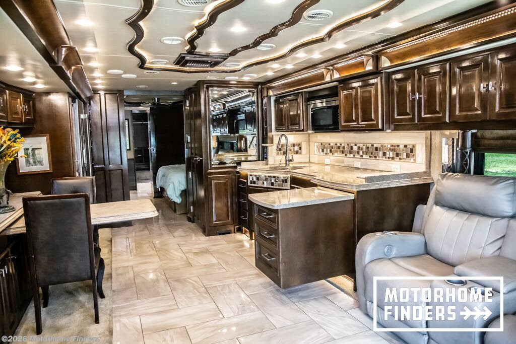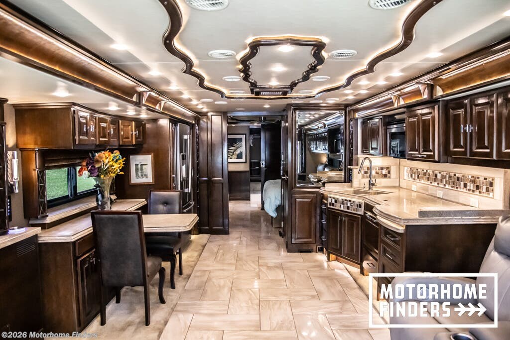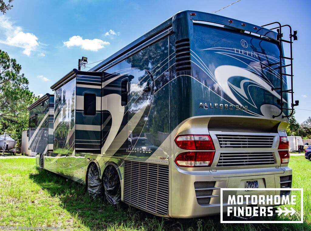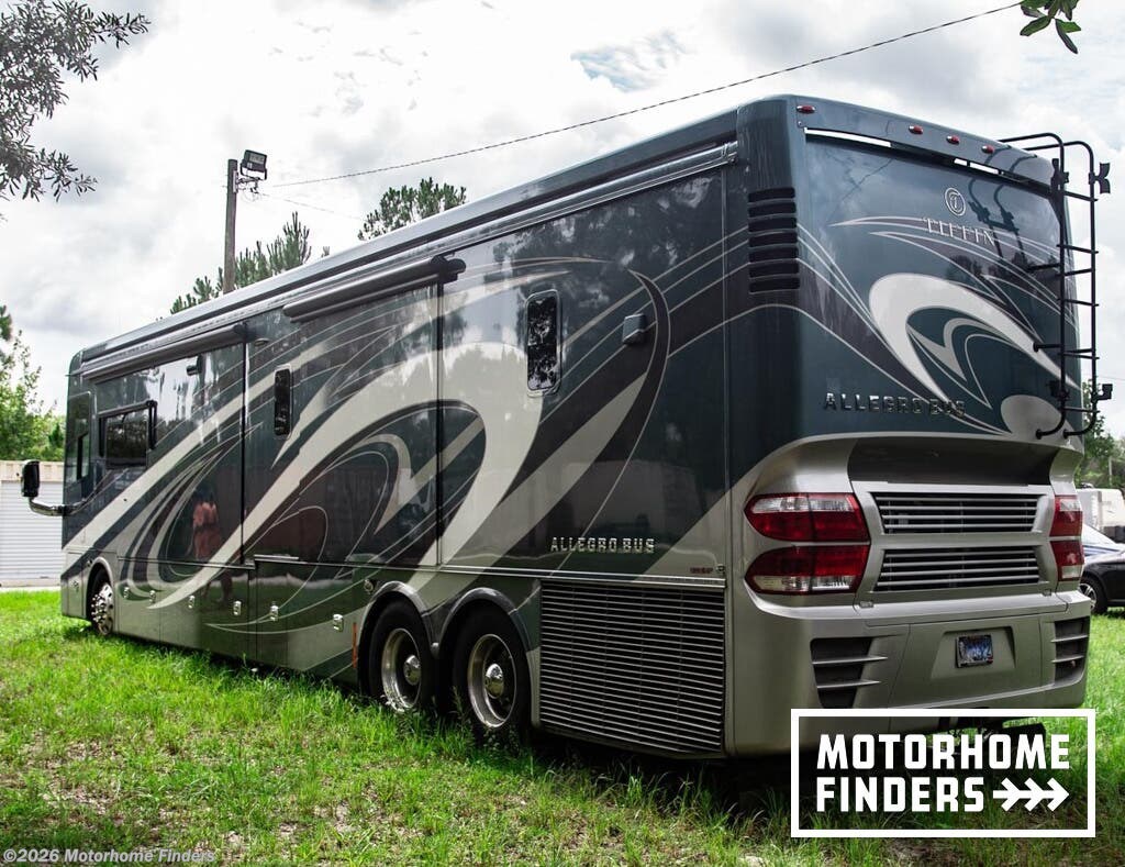 This beautifully appointed 2018 Allegro Bus 45OPP with the 605HP Cummins represents the very top tier of luxury diesel motorhomes from Tiffin Motorhomes. Finished in striking Smokey Teal full-body paint and paired with an upscale Mahogany interior and glazed Canyon Cherry cabinetry, this quad-slide, bath-and-a-half floorplan delivers exceptional livability, residential comfort, and long-distance confidence. As an all-electric coach (no LP/propane), it is perfectly suited for extended stays and upscale resort travel.