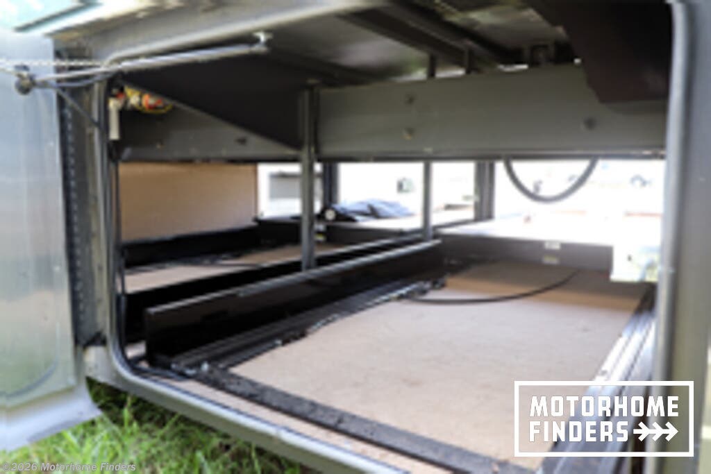 Two power slide-out storage trays & full pass-through basement storage – easy access to heavy or bulky gear.