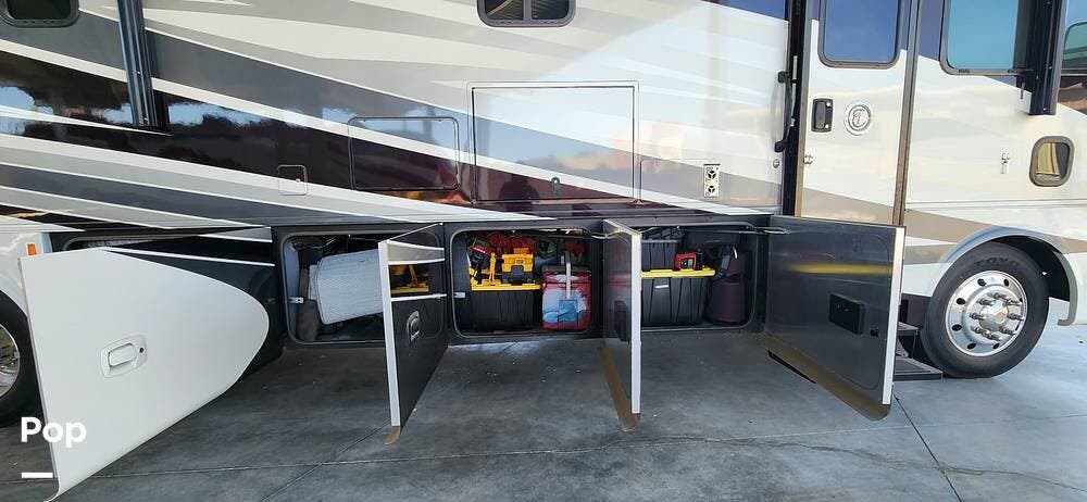 The 36 UA comes with features that make life easier, such as hydraulic leveling jacks, a power awning with LED lights, an onboard generator, and dual A/C units to keep the entire coach cool. There's also a good-sized basement storage outside for all the extra gear.