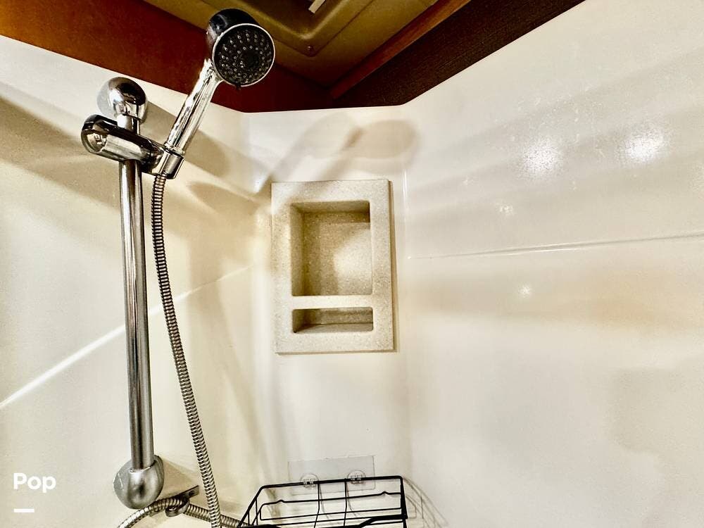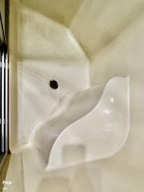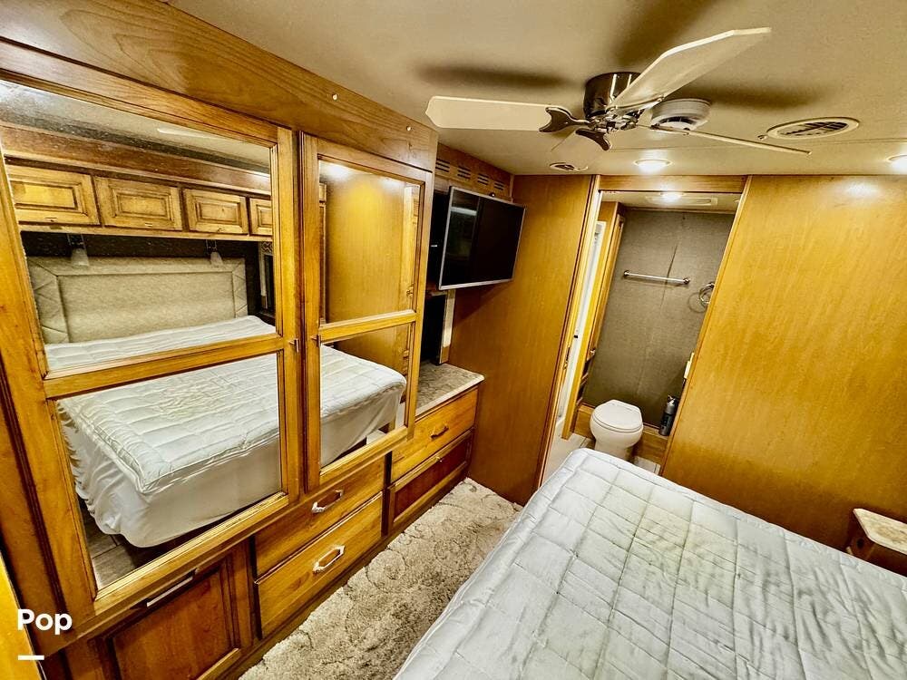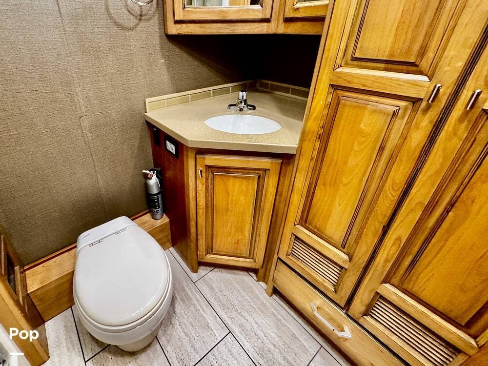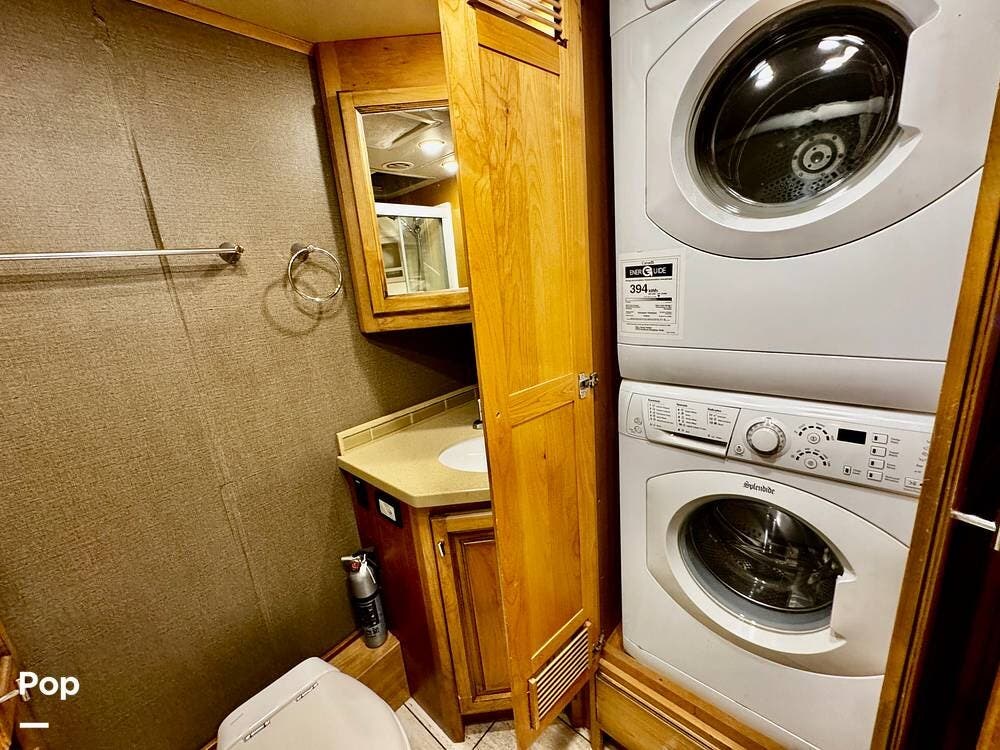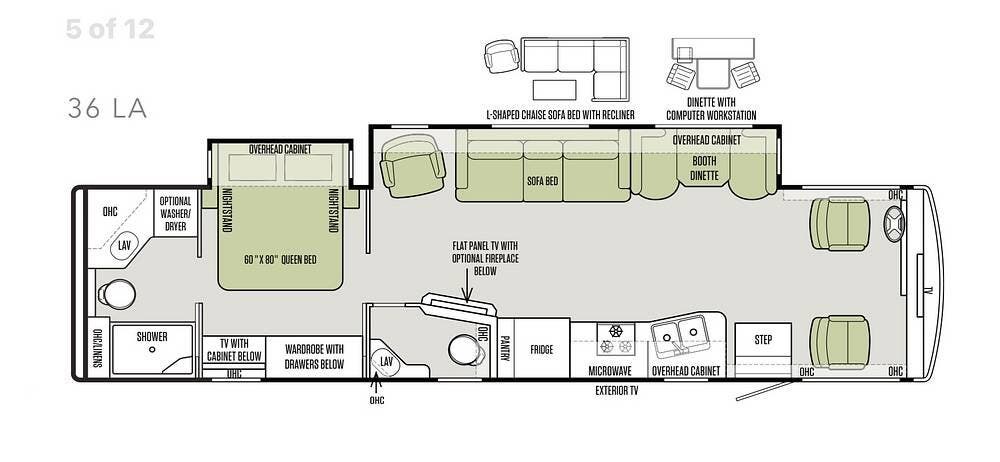 Also, a half bath is available for family and guests while entertaining. The rear master bedroom has a queen bed, TV wardrobe, and bank of drawers with storage under the bed. A private full bathroom is located at the rear of the coach that has a wash and dryer.. Very convenient, smartly utilized space..