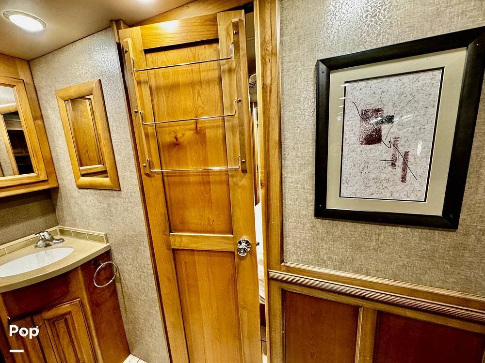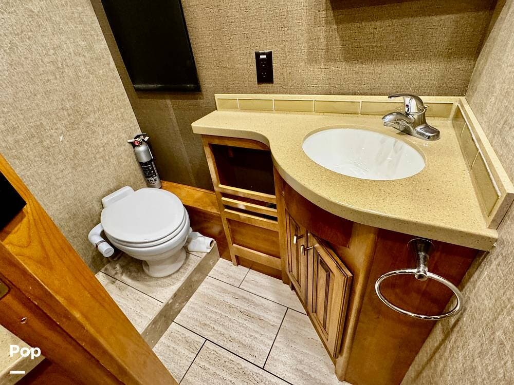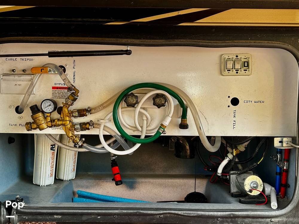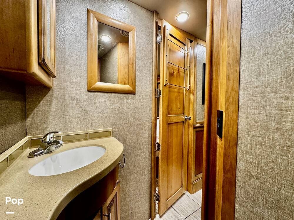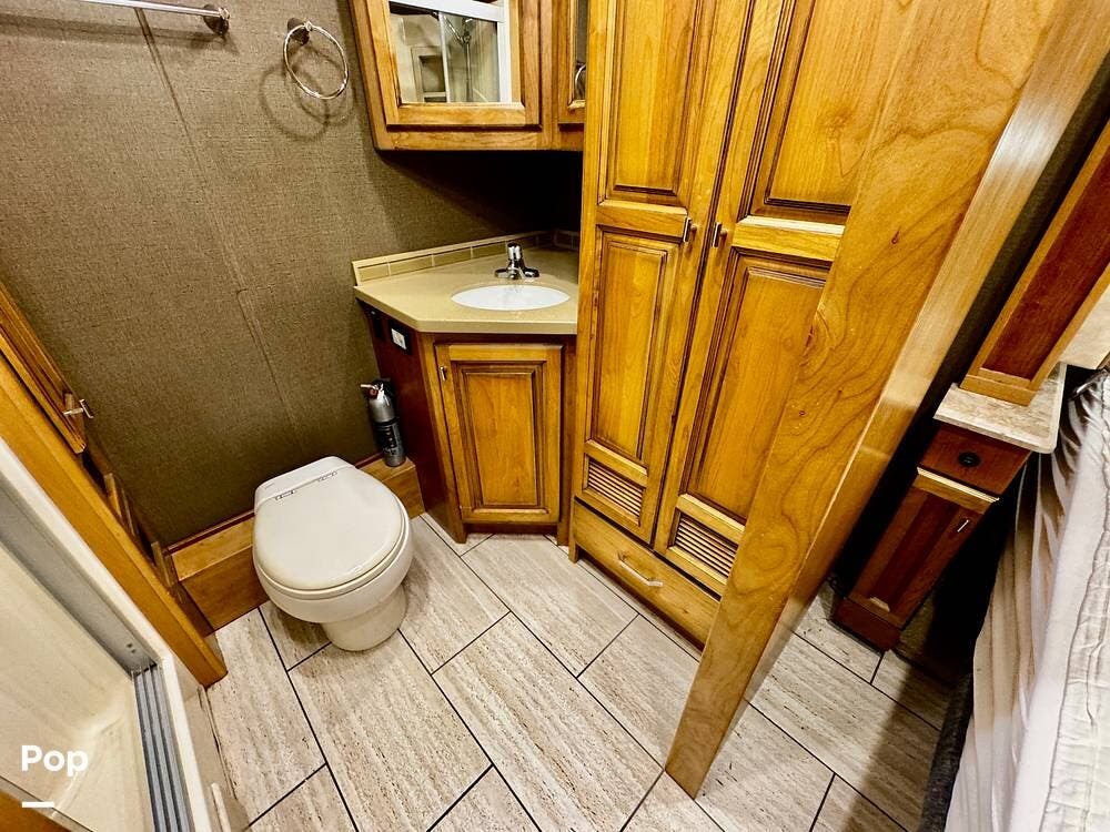 Also, a half bath is available for family and guests while entertaining. The rear master bedroom has a queen bed, TV wardrobe, and bank of drawers with storage under the bed. A private full bathroom is located at the rear of the coach that has a wash and dryer.. Very convenient, smartly utilized space..