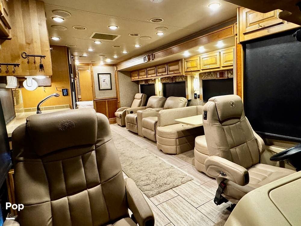 Directly across is Theater Seating(2) and a Leather Recliner and Large Leather Booth Dinette that also makes into a bed. MIdway through the coach is a TV/Fireplace mounted at an angle back towards the booth dinette.