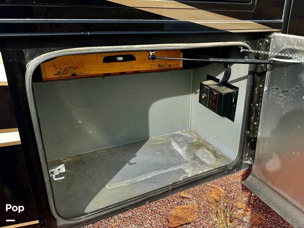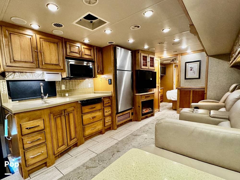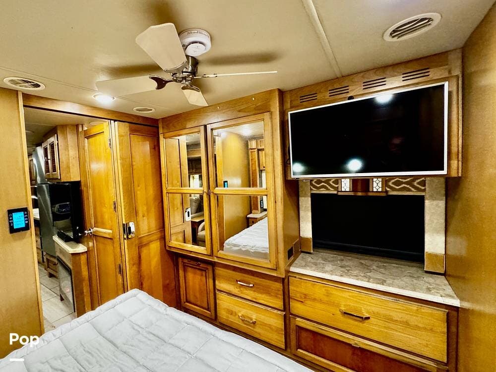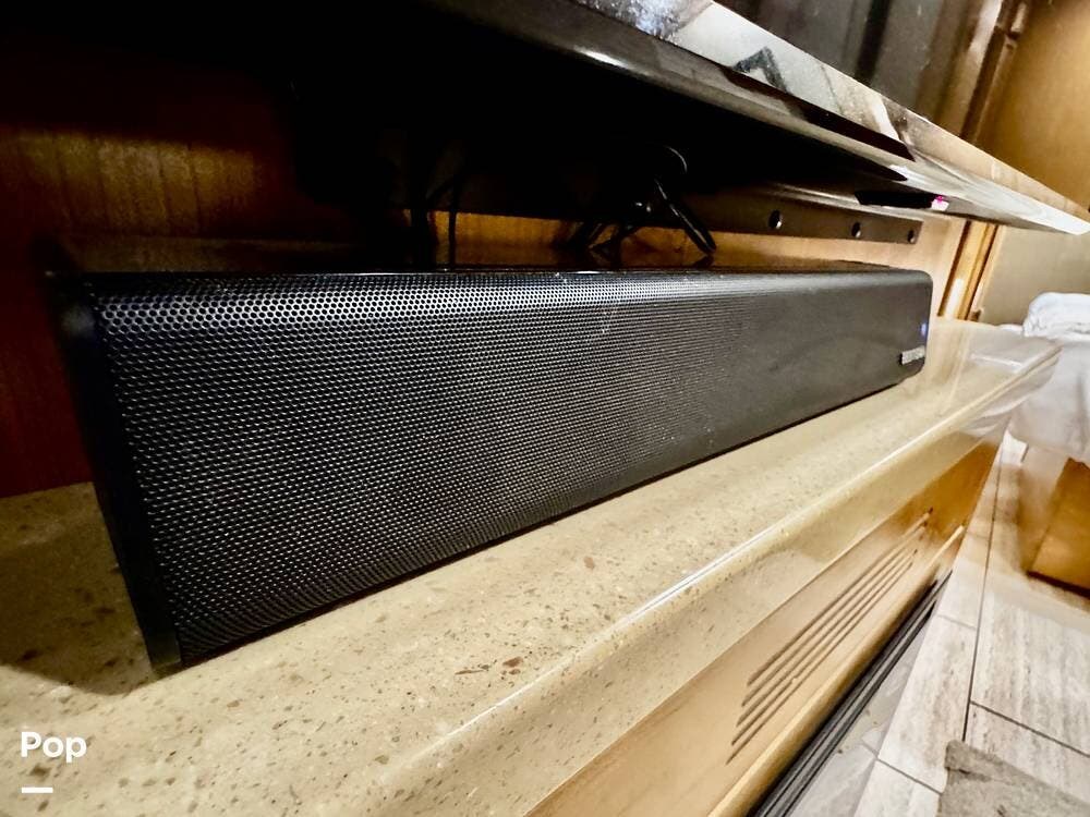 Outside, under the awning, is a TV, and all the slide-outs have toppers. A roof ladder for easy access to clean up top side, and maintenance when necessary. This Coach has Beautiful Full Body Paint!
