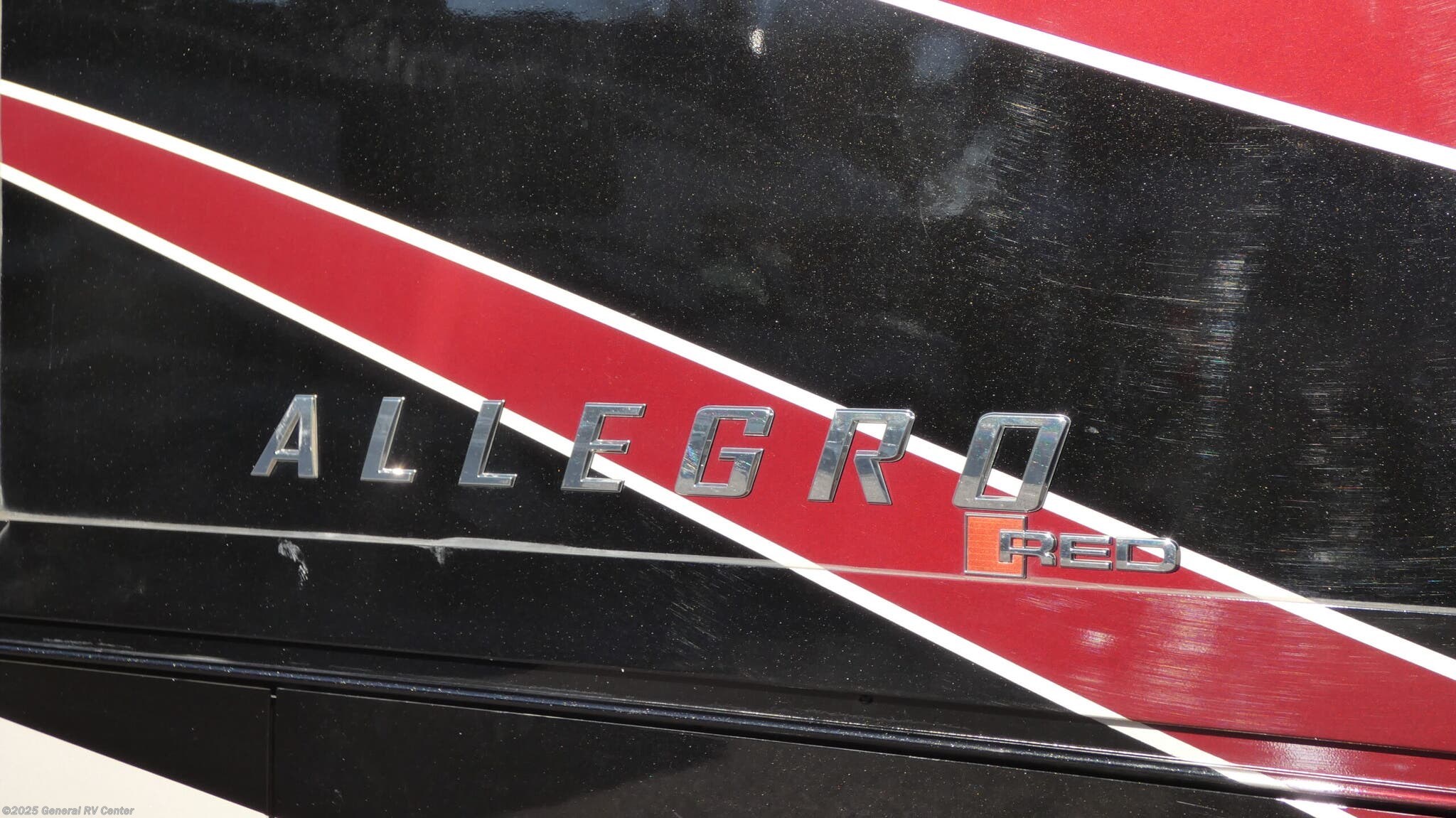 **Tiffin Allegro RED class A diesel motorhome 33 AA highlights:** - Recliner - Full Bath - Two Door Refrigerator - Flat Panel TV - Exterior TV Been searching for the perfect RV to take you to far away places in comfort even while moving down the highway? This Allegro RED class A diesel coach offers a power passenger seat with footrests with an adjustable seatbelt bracket, and Ultra Leather furniture in the main living area for relaxing at your destination. You will appreciate the 12V and USB dash receptacles allowing the electronics to stay charged to take pictures or download your favorite apps. If you arrived at your RV spot at night, you can retire to the queen size bed slide out in the rear bedroom which also includes nightstands and overhead cabinets. You will have full bathroom and kitchen amenities to stay clean and fed the whole time. Start exploring today! With any Allegro RED class A diesel motorhome you will enjoy luxury, and detail to every feature throughout. You will find the Ultra Leather furniture offers contemporary finishes and comfort, plus the Artisan Woodcraft woodwork from solid unblemished hardwood by Red Bay master craftsmen provide more storage for all your items. The low maintenance of the grid-locked porcelain tile floors offers durability and elegance you desire. You will see the Dry-Step allows for safe entry into the motorhome, the Onan generator provides a back-up plan, the Extraordinaire System is exclusive to Tiffin allowing quiet climate control technology, and the energy efficient lighting will have you wanting any Allegro Red model today!