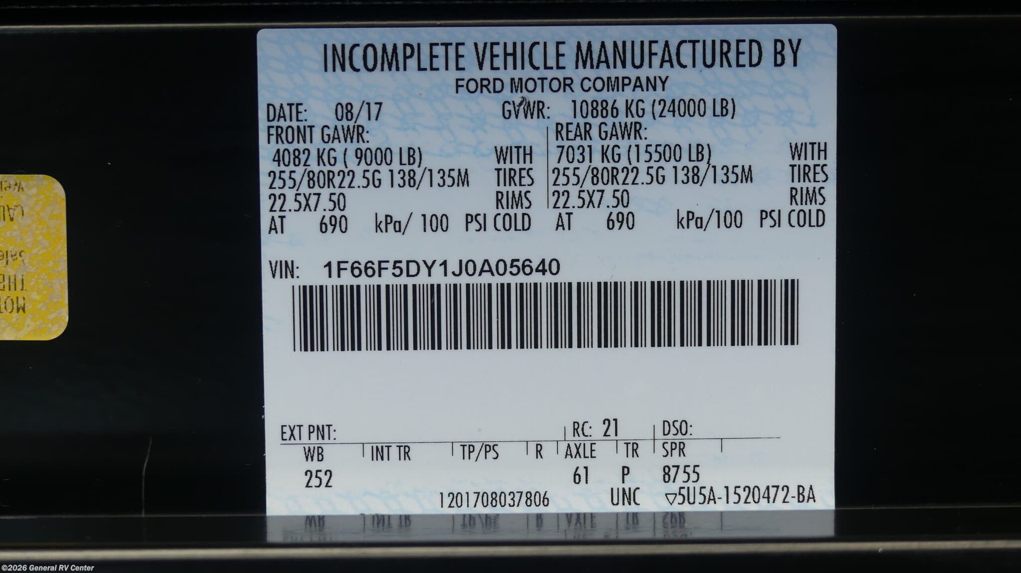 - VIN1F66F5DY1J0A05640