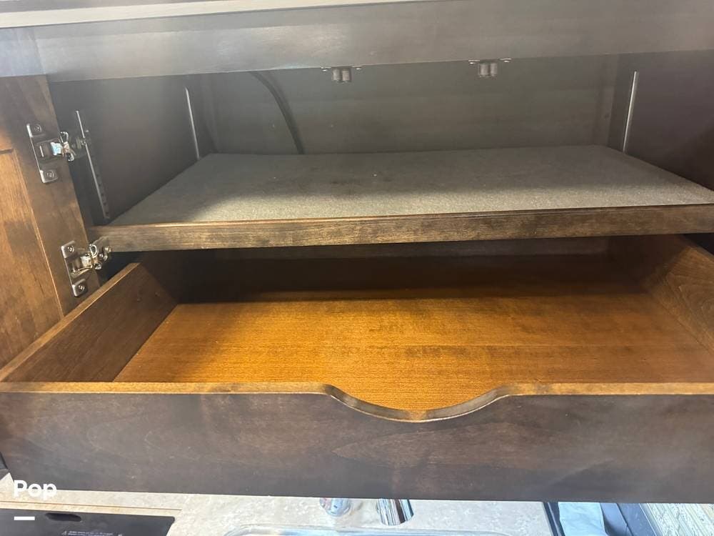 The master suite offers a private retreat with a comfortable king-size bed, generous wardrobe space, and premium finishes that rival upscale homes. A well-appointed bathroom with quality fixtures and a large shower ensures comfort wherever your travels take you. There is also a tv in the master bedroom and a hidden safe. There is also plenty closet and drawer space, and a large storage area under the bed.