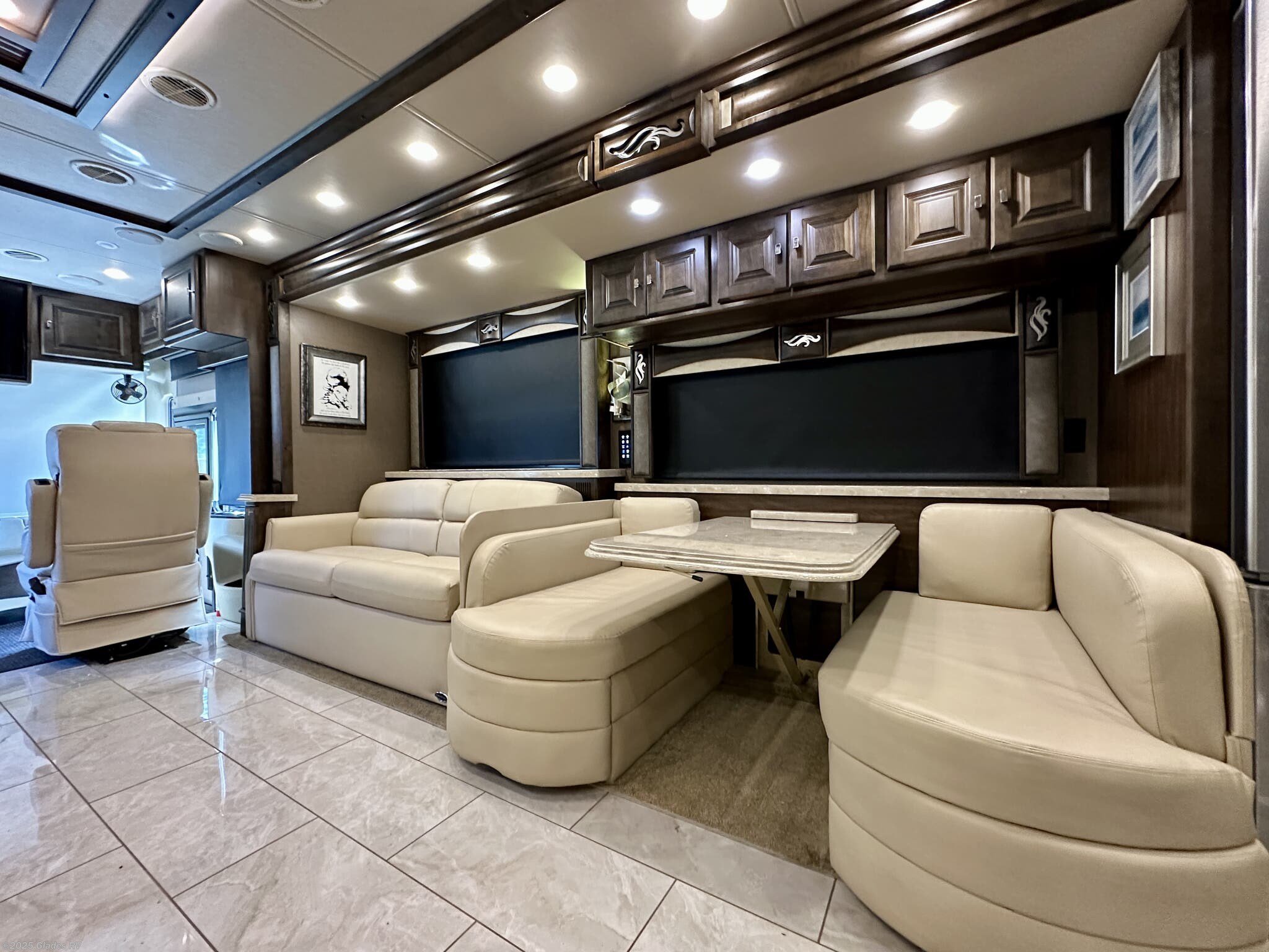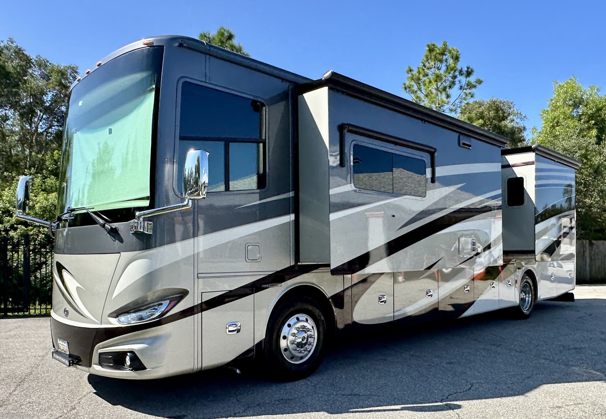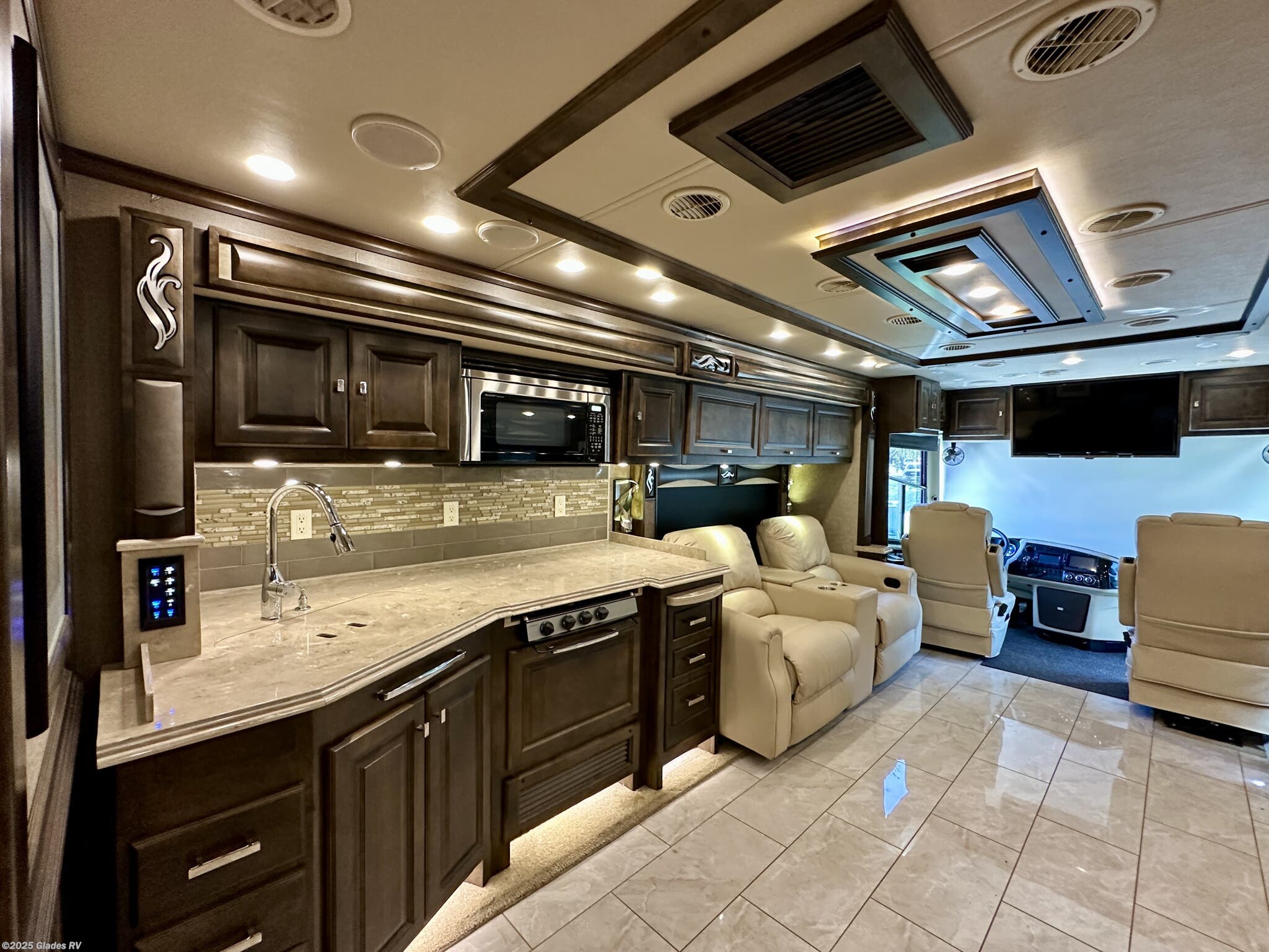 AUTO LEVELING, POWER AWNINGS, OUTSIDE ENTERTAINMENT, 2 SLIDE TRAYS IN BASEMENT, MOBILEYE, DISHWASHER, TELEVATOR TV, RESIDENTIAL REFRIGERATOR, STACKED WASHER & DRYER, KING BED, THEATER SEATS AND MUCH MORE...