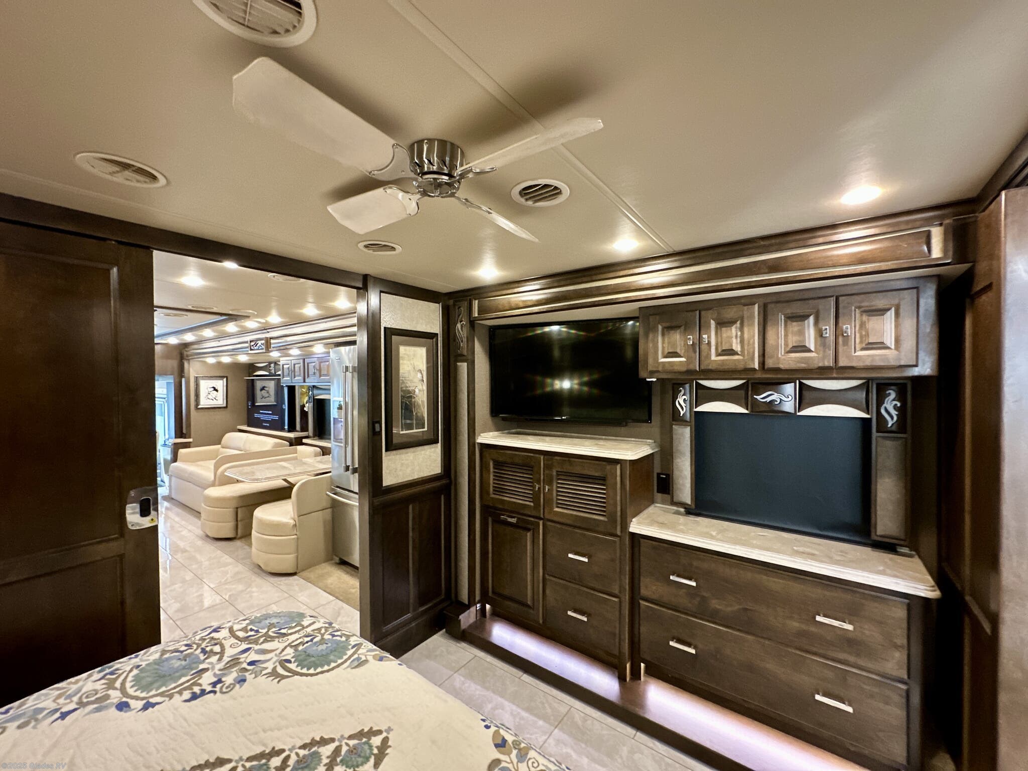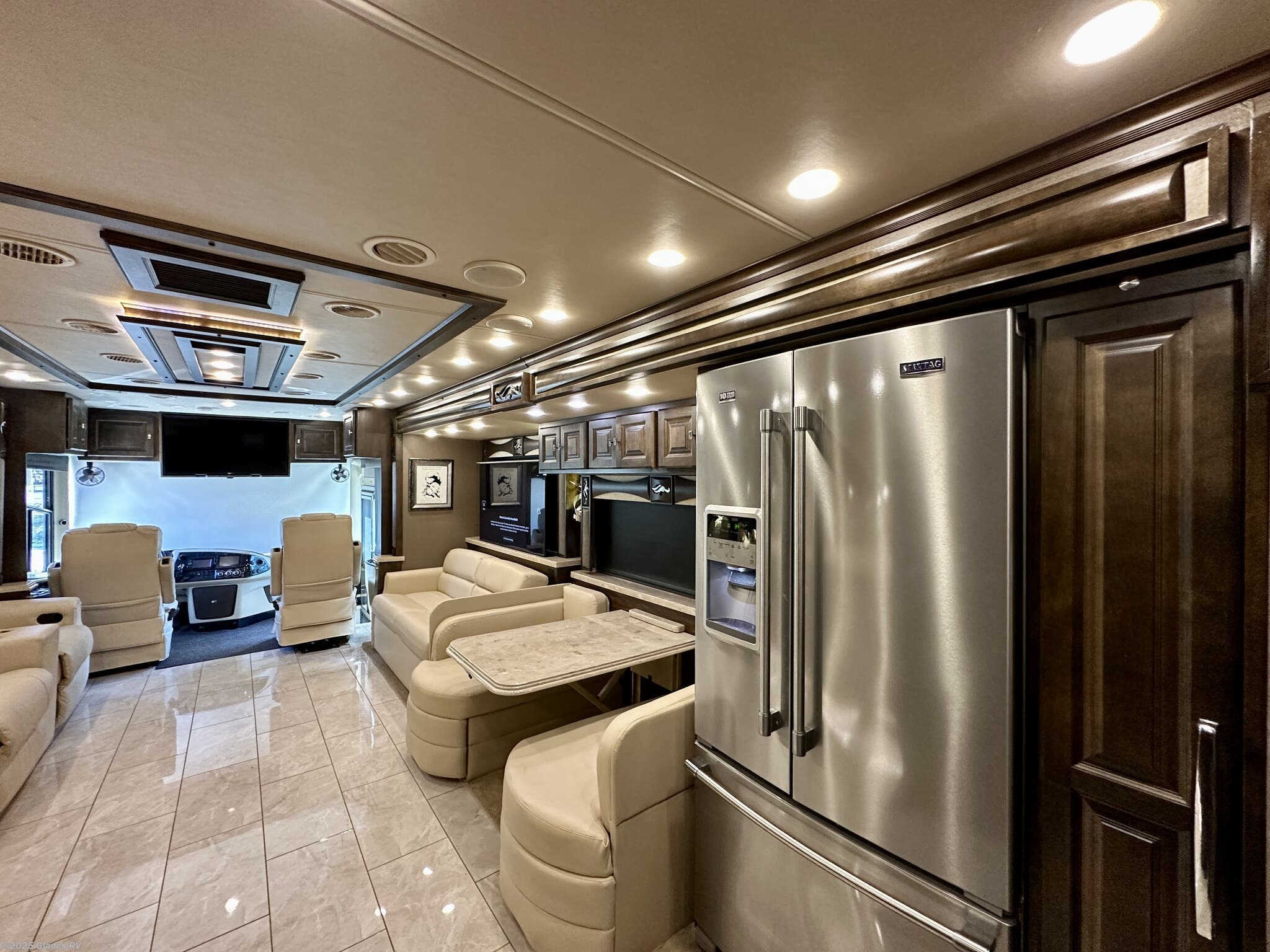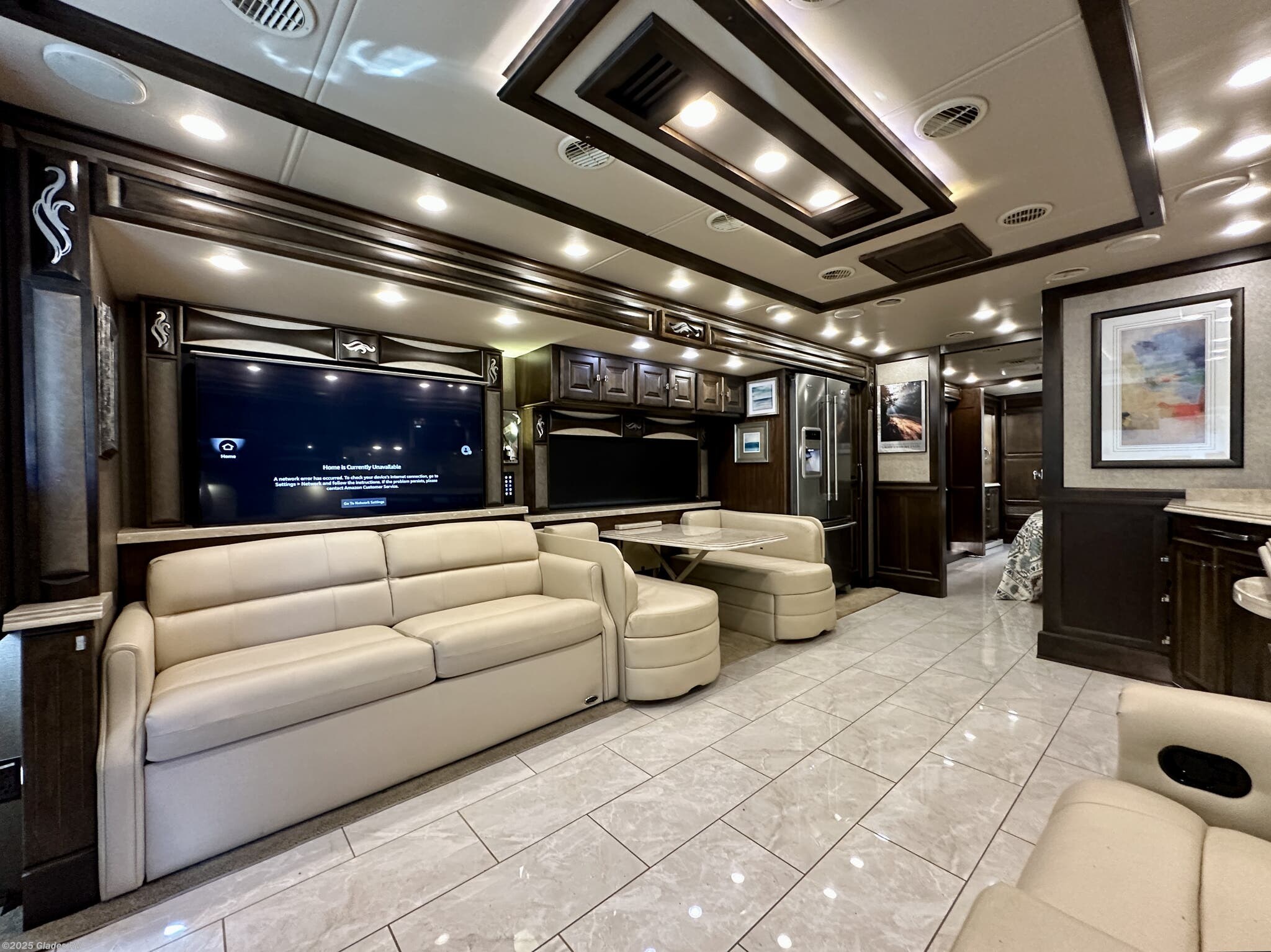 AUTO LEVELING, POWER AWNINGS, OUTSIDE ENTERTAINMENT, 2 SLIDE TRAYS IN BASEMENT, MOBILEYE, DISHWASHER, TELEVATOR TV, RESIDENTIAL REFRIGERATOR, STACKED WASHER & DRYER, KING BED, THEATER SEATS AND MUCH MORE...