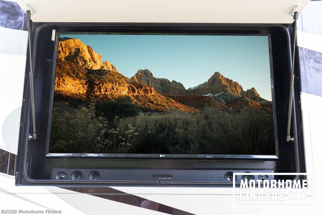 Lift TV & Front Overhead TV – Multiple viewing options throughout the coach