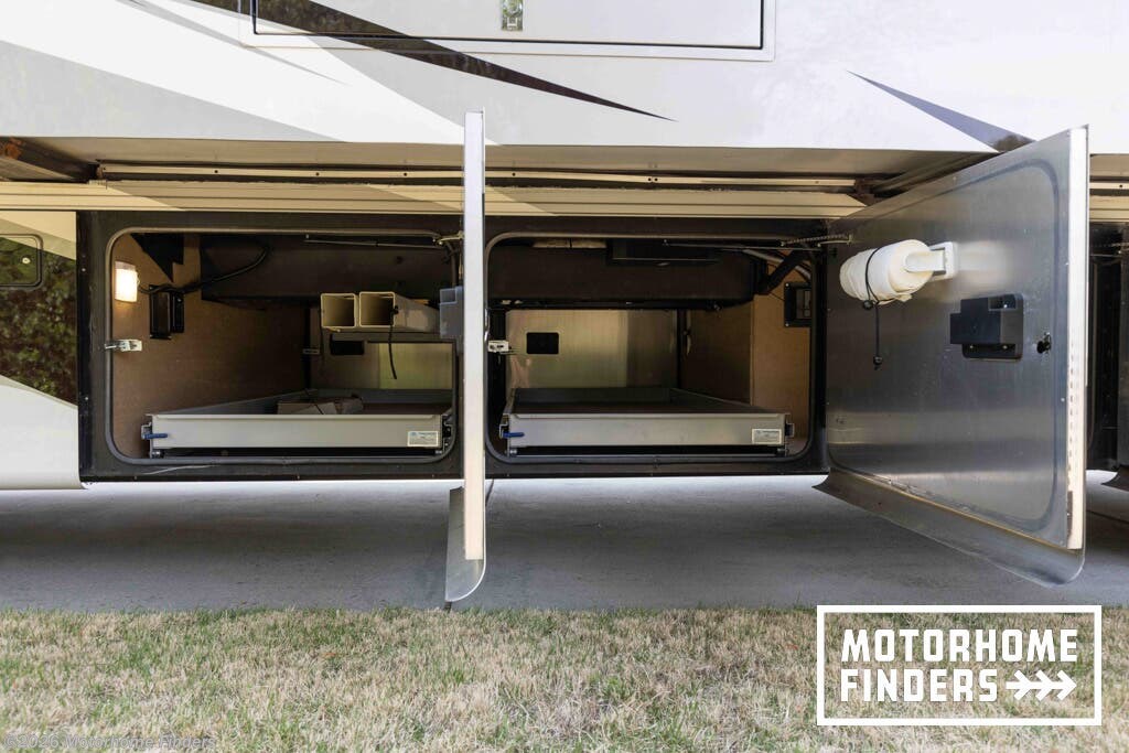 Air Assist Suspension, Alloy Wheels, Automatic Leveling Jacks, Awning, Backup Monitor, Black Tank Flush, External Shower, Full Body Paint, Hitch, Keyless Entry, Ladder, Leveling Jacks, Outside Entertainment Center, Pass Thru Storage, Power Awning, Power Entrance Step, Roof Vent, Side View Cameras, Skylight, Slideout, Slide-out Awning -