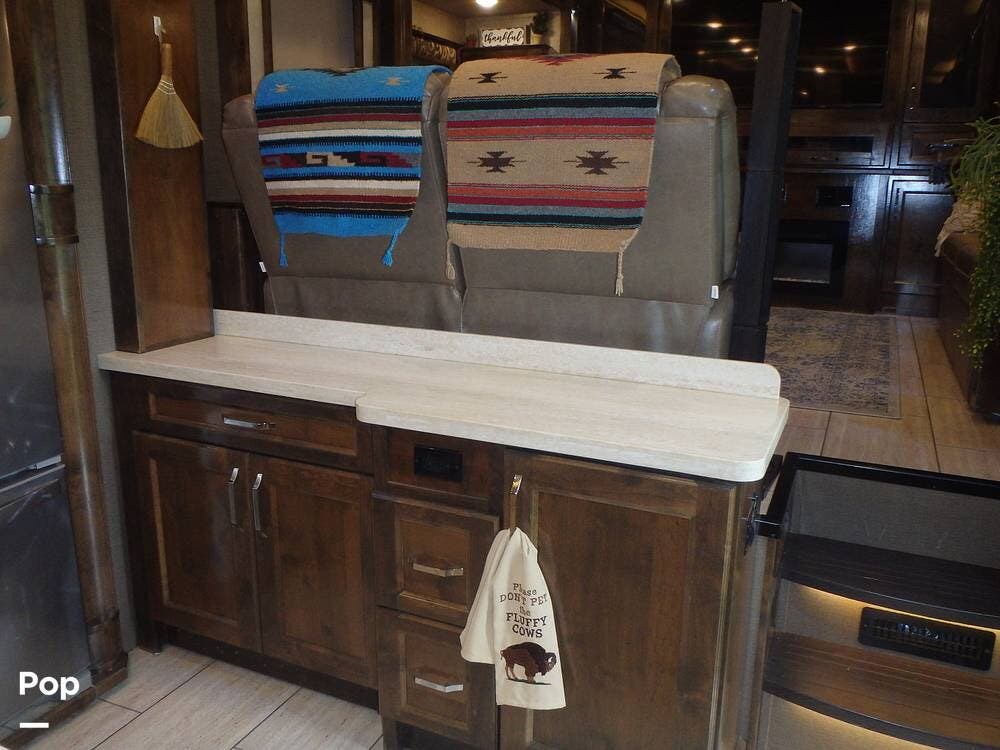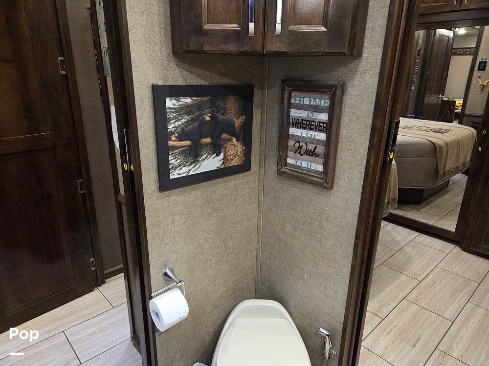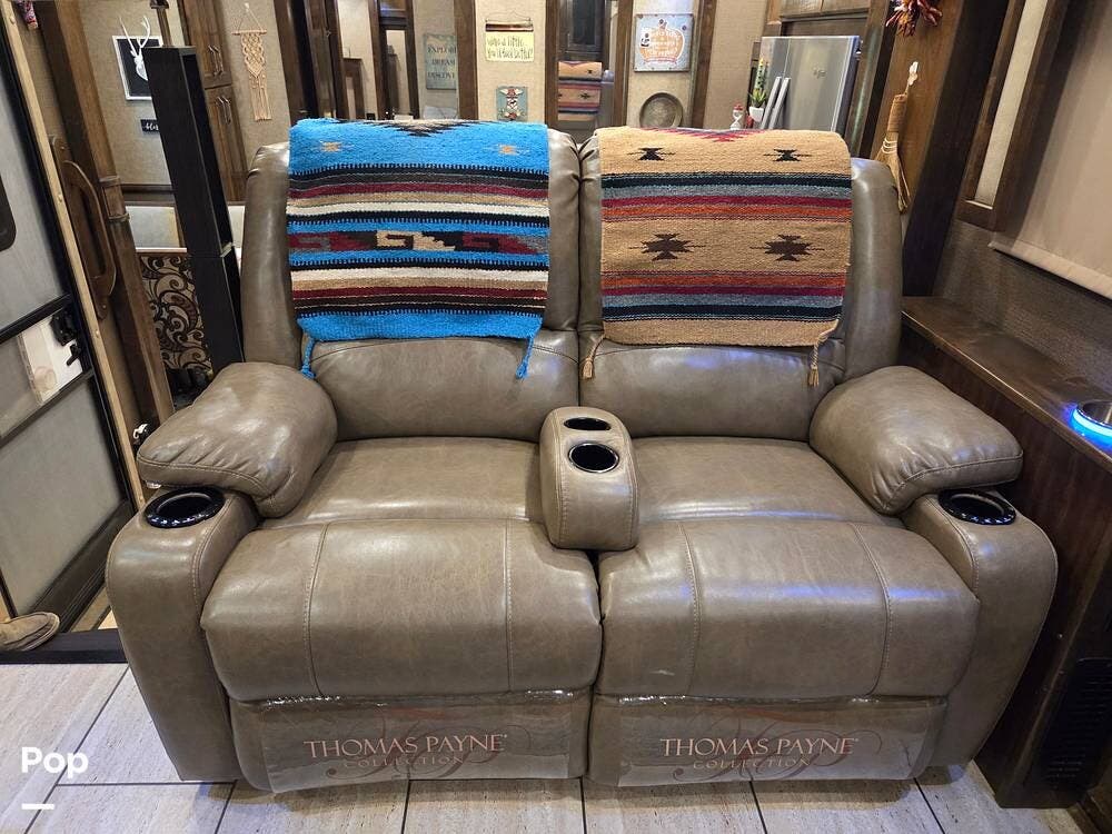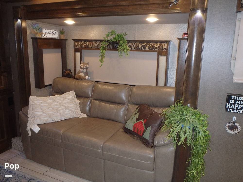 Features the sellers really love are the front living area and the roominess of the entire unit, which gives it an at-home feel. Also, a top feature is the self-leveling system, which is a favorite feature that makes leveling this beautiful unit easy. The spare tire is like new and the wheel of the spare matches all of the original wheels on the unit.
