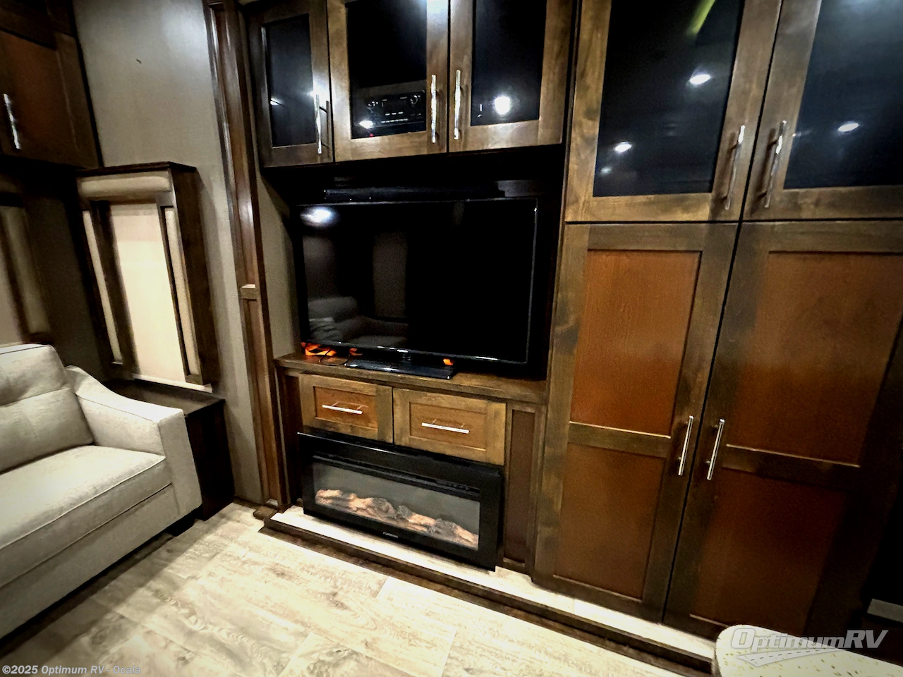 Are you ready to relax? Well come make this Vilano 365RL your home away from home. You will enjoy all of the comforts throughout from the comfortable seating at the 80" sofa bed to the 70" theater seats. In the evening plan to watch TV at the LED TV within the roadside slide out, plus there is a fireplace where you can enjoy the warmth on a cool evening. At night come retreat to the spacious master bedroom where you will find a king bed, a large wardrobe, plus a 40" dresser, and so much more!