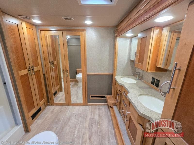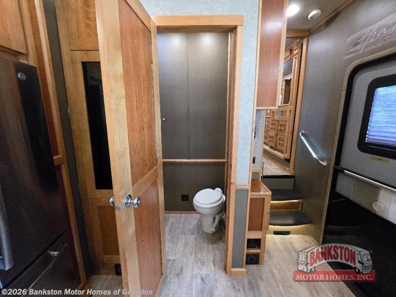Enjoy many indulgent camping trips with this VanLeigh Vilano fifth wheel as you tour the countryside in style. This model is an exceptional unit that not only contains a private master suite with its own full bathroom, but it also provides an additional half bathroom in the kitchen for all of your guests to easily locate. This front bedroom is secluded from the rest of the trailer giving you the perfect place to relax and unwind in peace each evening, and because this bedroom includes a queen-size slide-out bed, you have loads of extra room in this suite for a walk-in closet and 41" x 30" shower.