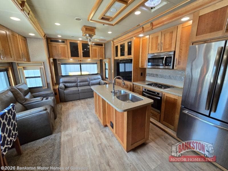 When you choose a Vilano fifth wheel, you get a luxurious and classy unit without the high-end price tag. On the exterior portion of the Vilano, you will find a fully enclosed and heated underbelly with heat return and a Noble T60 high-gloss fiberglass exterior, and on the interior you will enjoy solid surface kitchen countertops and LED recessed lighting. With a Vilano you always receive the latest in entertainment technology, such as the surround sound system in the living room, the entertainment center with Bluetooth capabilities, the USB ports in the bedroom nightstands, and the multiplex wiring system with a digital home screen. Whatever your future adventuring plans may be, the Vilano fifth wheel will be there to enhance every aspect of your trip.