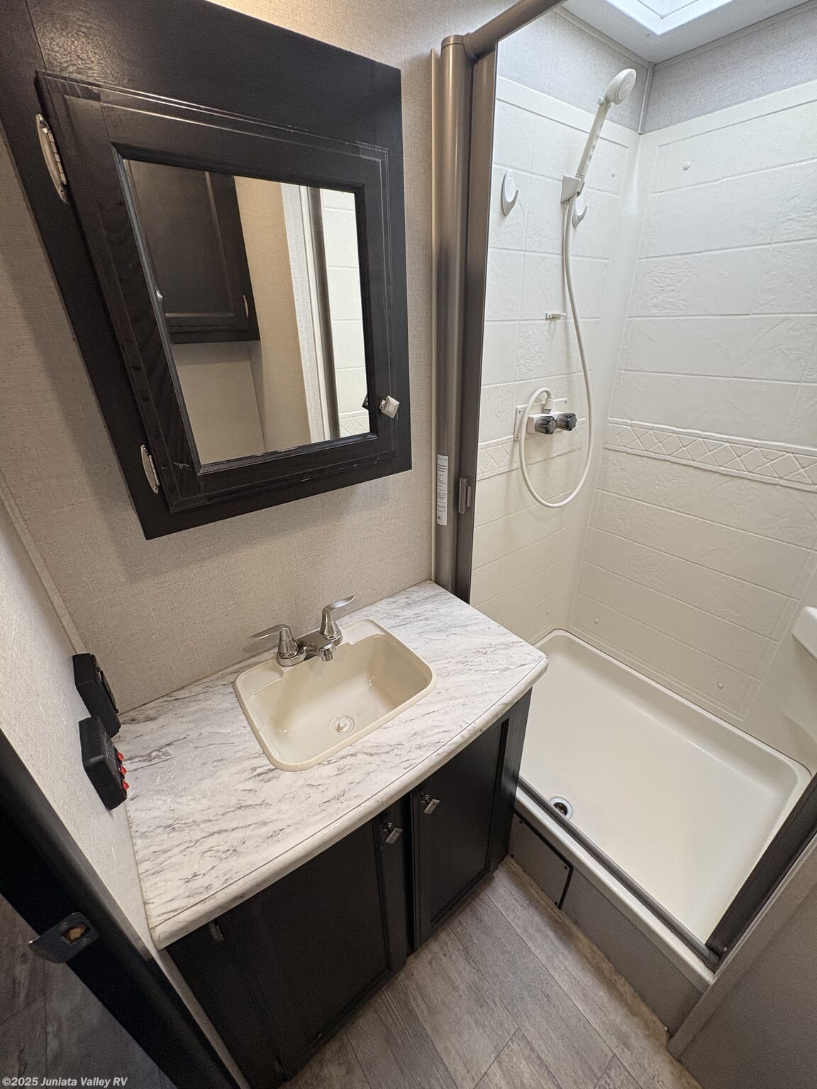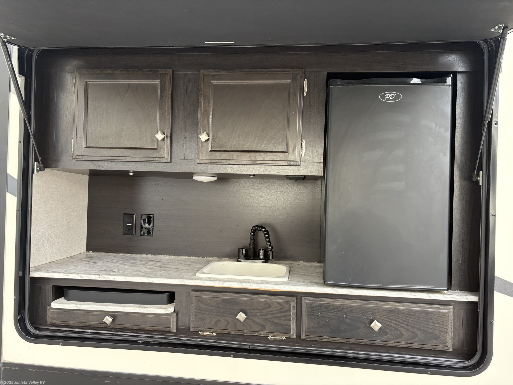 Alloy Wheels, Awning, Black Tank Flush, Detachable Power Cord, Exterior Grill, Exterior Speakers, External Shower, Fiberglass Sidewalls, Front Fiberglass Cap w/Window, Front Overhead Storage, Heated Underbelly, Ladder, Outside Kitchen, Pass Thru Storage, Power Awning, Power Hitch Jack, Power Roof Vent, Power Stabilizer Jacks, Rear Bicycle / Cargo Tray, Roof Vent, Screen Door, Second Roof A/C, Skylight, Slam Latch Baggage Doors, Slideout, Spare Tire Kit, Stabilizer Jacks, Tinted Windows, Upgraded Insulation Package -