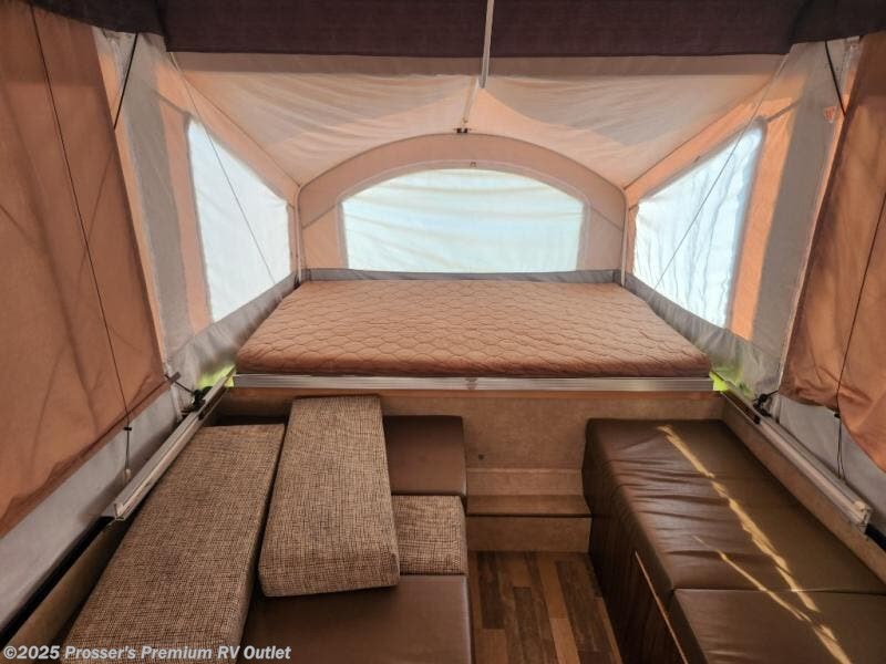 You are sure to enjoy this Viking LS Series model 2107LS folding camper trailer on every trip. There is plenty of relaxing space inside with a lounge sofa and booth dinette once the front queen and rear full size tent end beds are set up.