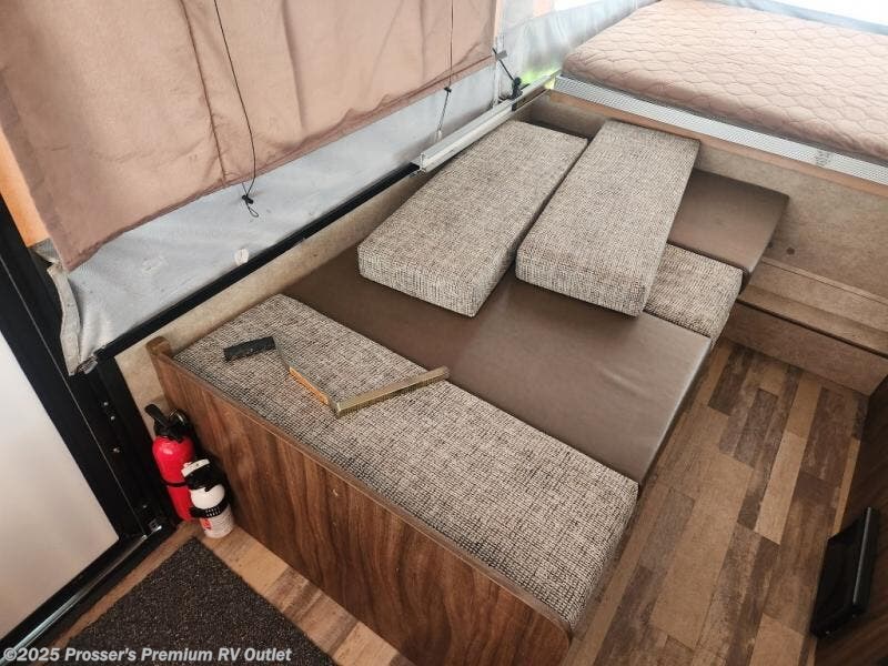 Enjoy meals at the dinette table, and at night it can be folded down to provide additional sleeping space if needed. The bench seats lift up to provide storage below for games, camping gear, and more.