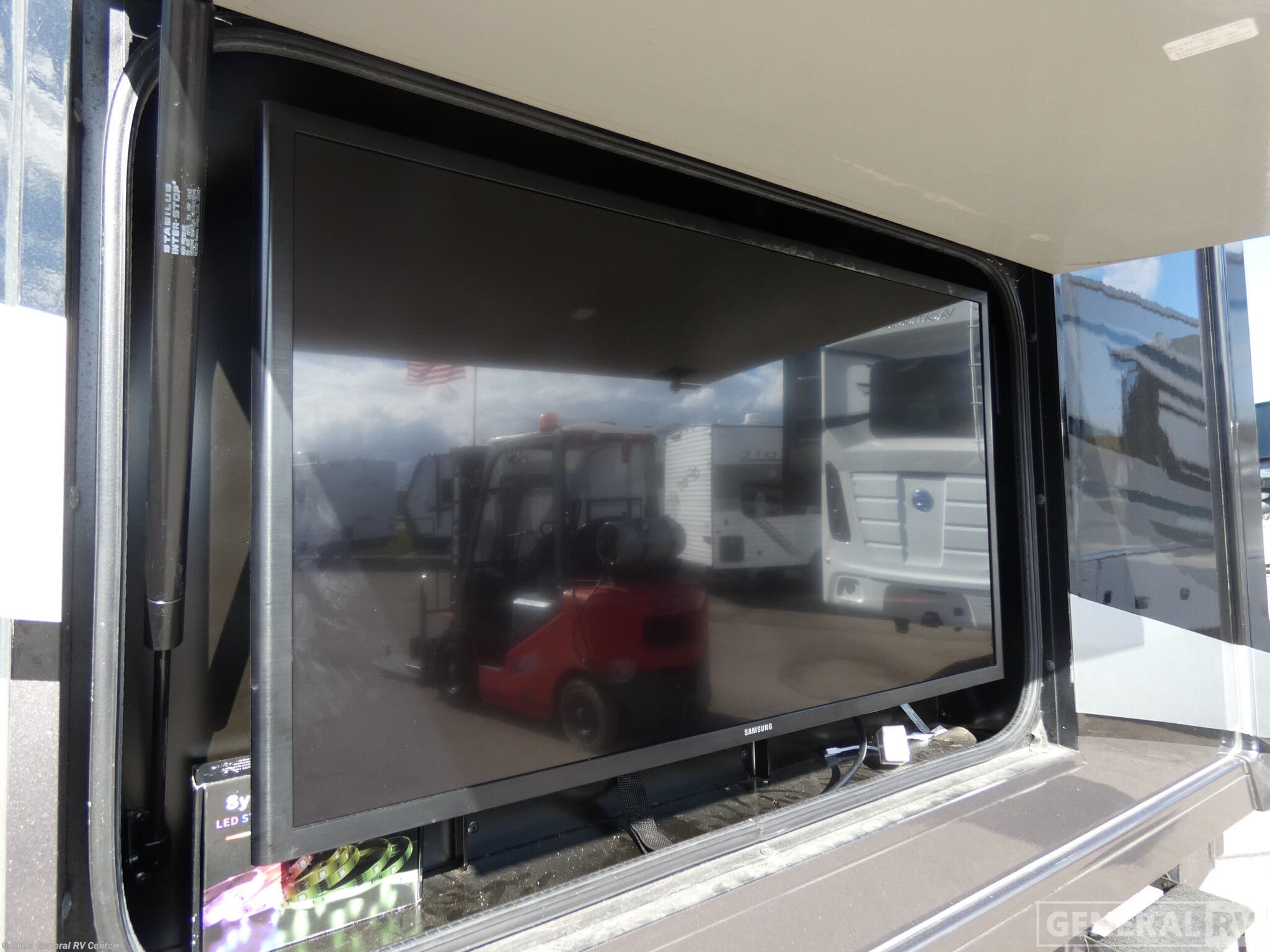 This Forza 36G class A diesel coach will have you envisioning where all your gear will go on your next trip. The private bedroom not only offers a walk-around queen bed unless you choose the king bed option, there is plenty of storage in the chest of drawers, wardrobe, and on the nightstands. In the main area you can dine and play games at the BenchMark dinette, the TrueComfort+ sofa and the recliner with a pull-out/flip-out table to place your cup of coffee or keys. You have a TV in both the lounge area and the bedroom. You might like to add a third TV by choosing the optional exterior 32" HDTV and entertainment center. There is plenty more storage throughout, more features to see and want, plus options to choose from such as a washer/dryer, a StudioLoft bed over the cab, and more! Each Forza class A diesel coach by Winnebago offers a smooth ride to your favorite destinations, providing up to 228 cubic feet of exterior storage for your gear, and Corian galley countertops for the cook in the family. You will also love the look and feel of the Primera by Ultrafabics upholstered Versa swivel cab seat when riding down the road or visiting with others in the main living area. Your electronics can stay charged the whole time thanks to the USB chargers located in the cab, lounge, and bedroom. Come see which Forza floorplan will work for your diesel pusher lifestyle.