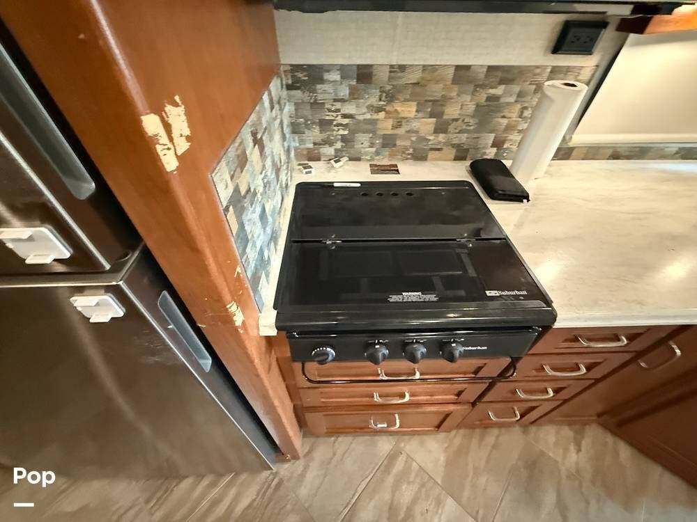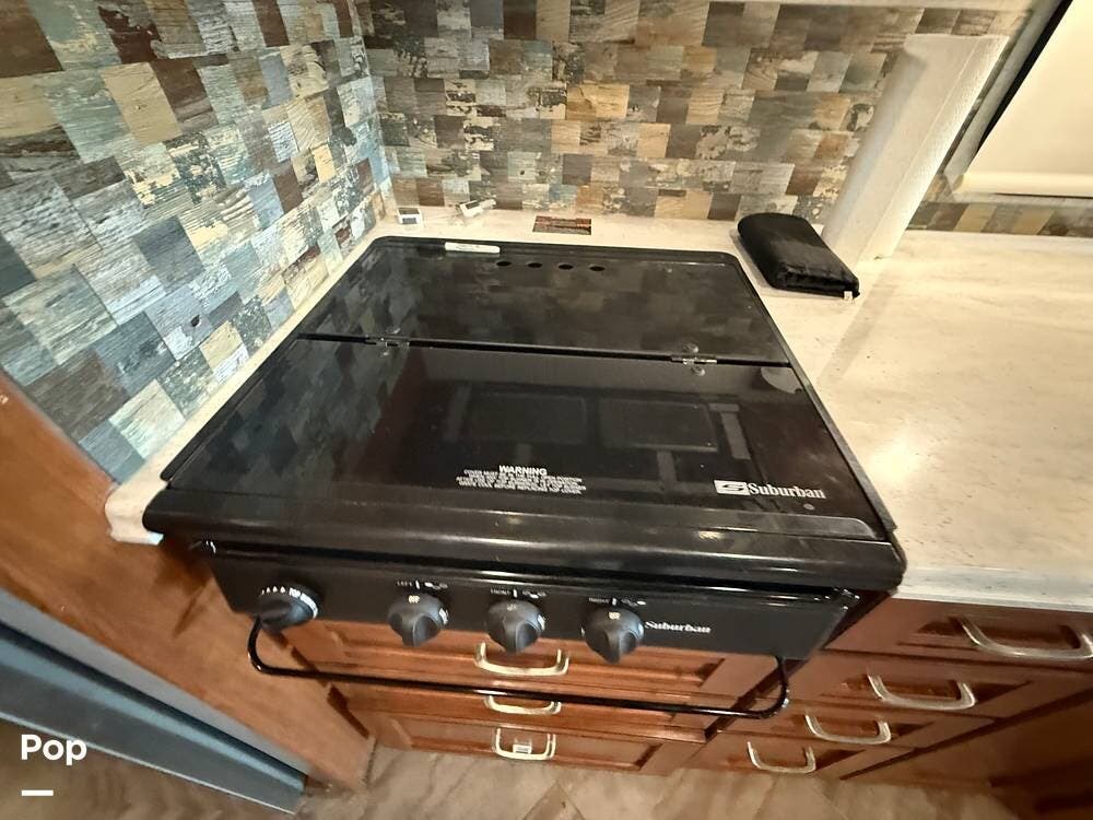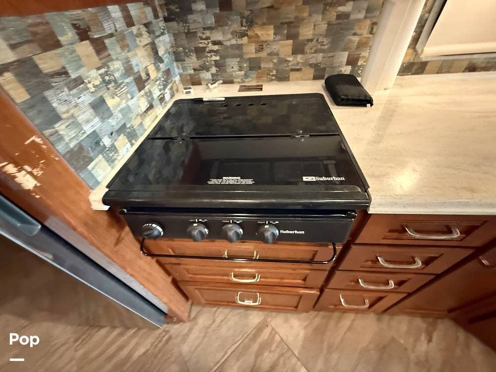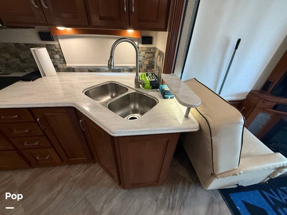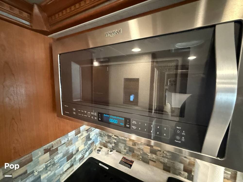 Inside, this Forza 36G showcases Winnebago's craftsmanship and attention to detail. You'll find premium furnishings, residential-style amenities, and expansive slide-outs that create a spacious, open living area. The reclining theater seating, electric fireplace, and entertainment center set the stage for relaxing evenings, while the fully equipped gourmet kitchen with solid-surface countertops, stainless-steel appliances, and abundant storage makes cooking on the road a pleasure.