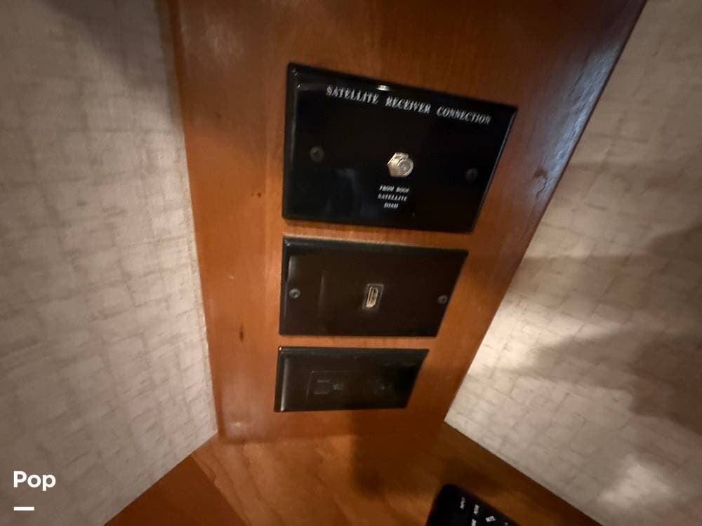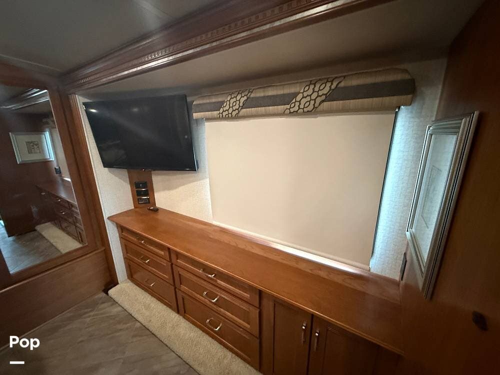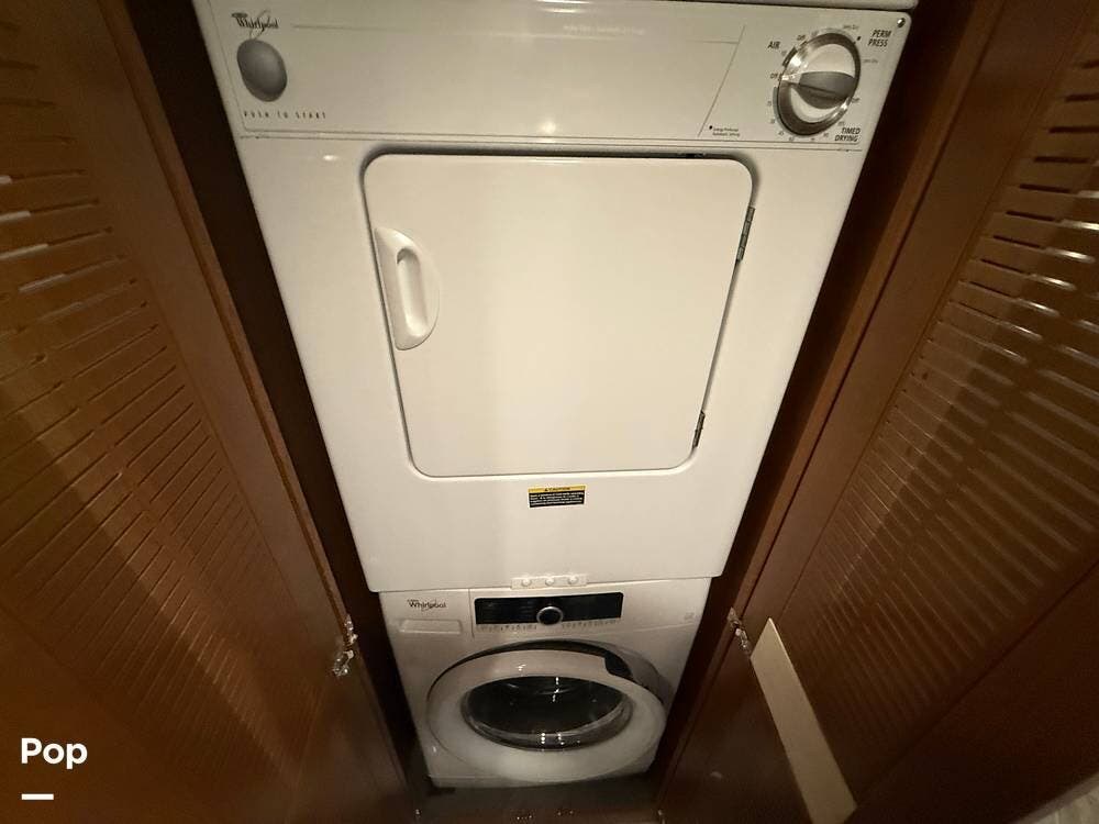 The master suite offers a true retreat with a walk-around queen bed, a large wardrobe, and its own TV. A luxury bath, washer/dryer prep, and generous exterior storage round out the comfort and convenience.