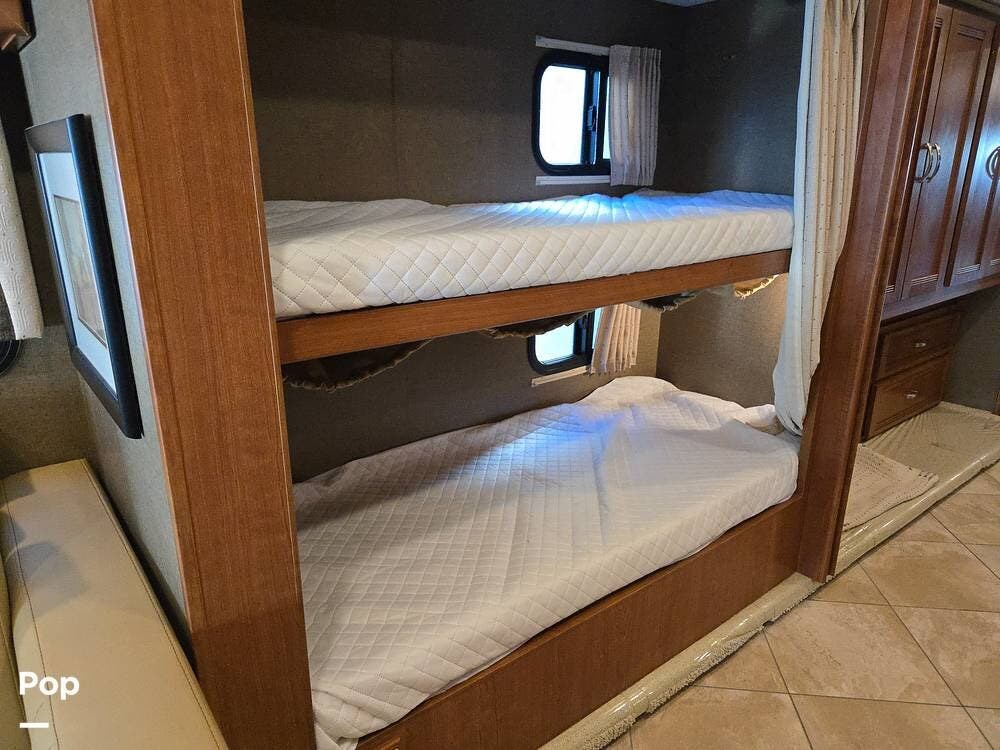 The 2019 Winnebago Forza 38W. Key features include a rear engine for a quiet ride, a luxurious interior with a bunk model layout & two full bathrooms