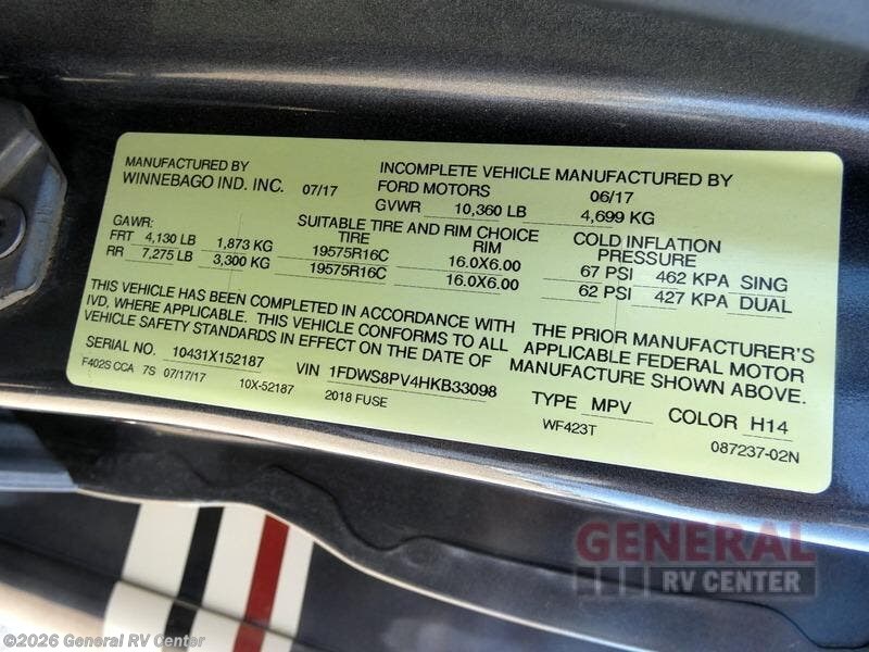 Request More Info on this 2018 Winnebago Fuse 23T Offered for sale by General RV Center