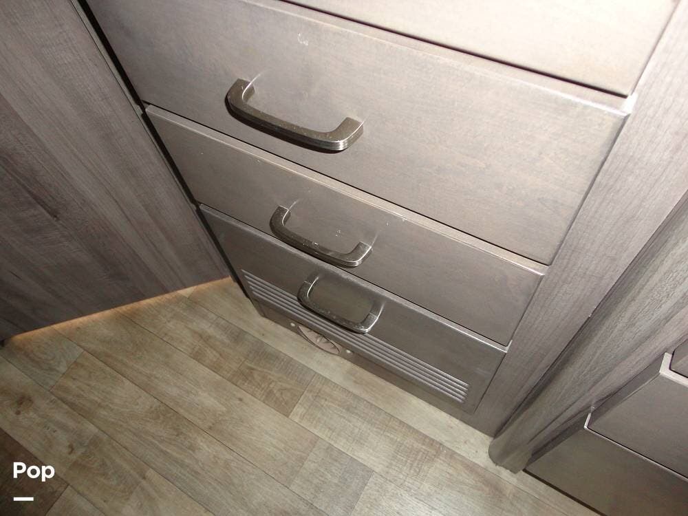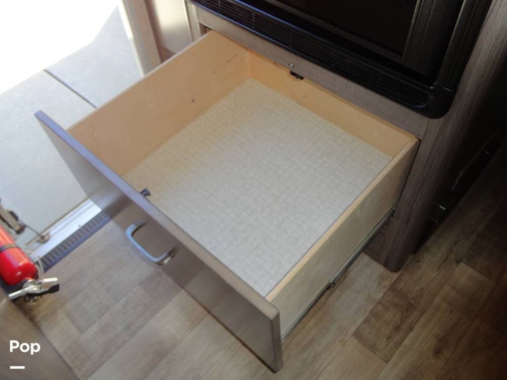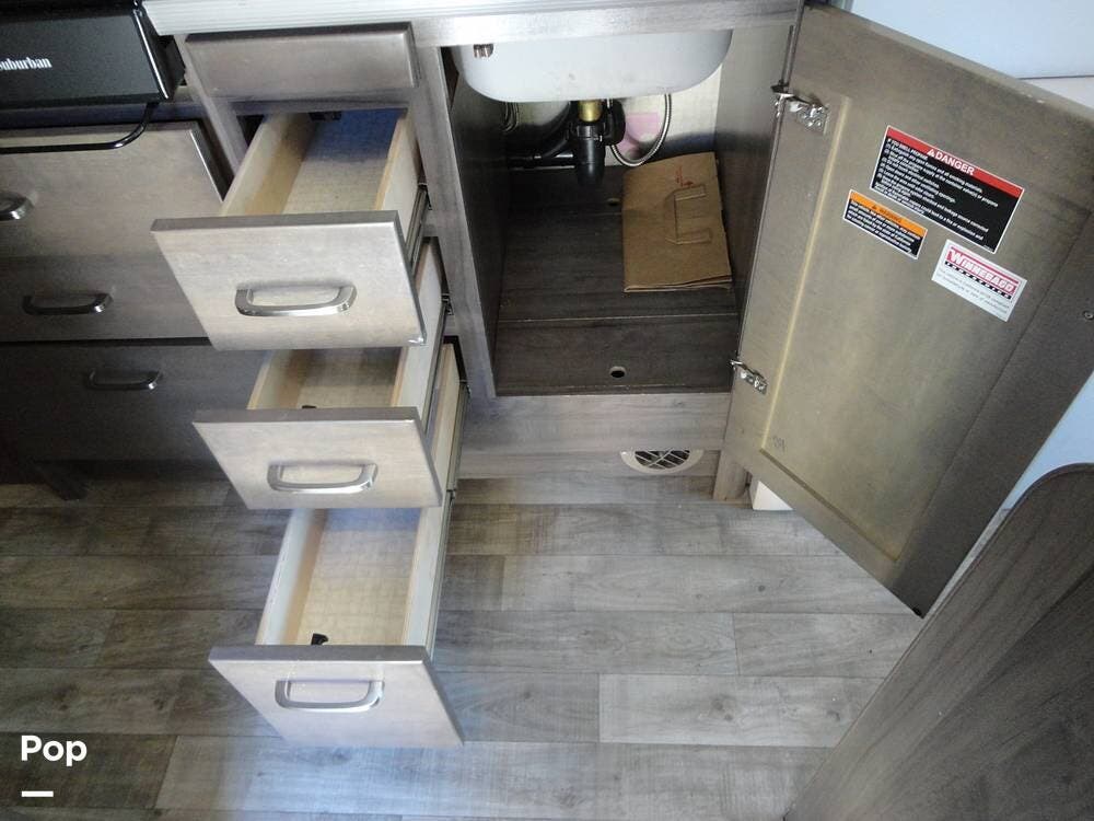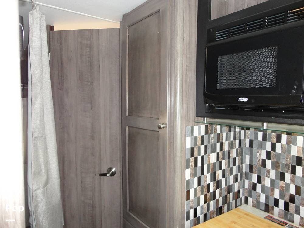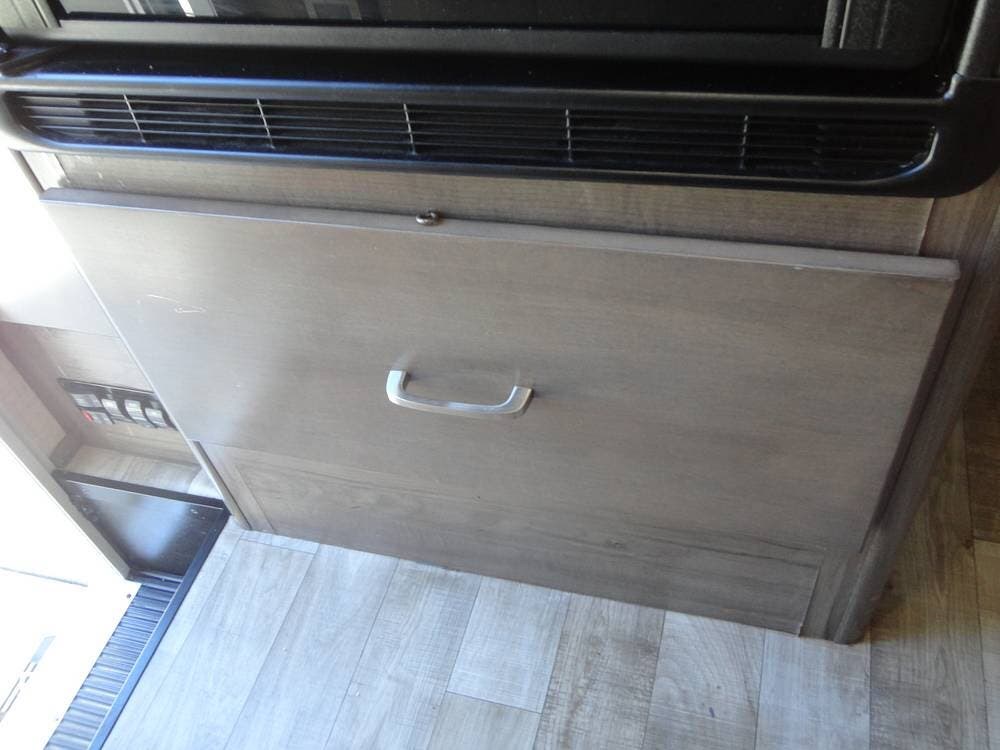 This 2018 Fuse 23T comes with a multitude of extras that enhance your travel and camping experience. There are four rooftop solar panels (580 watts), two 100 amp-hour lithium batteries, a 3000-watt inverter, a TPMS, and side-view cameras for added safe driving.