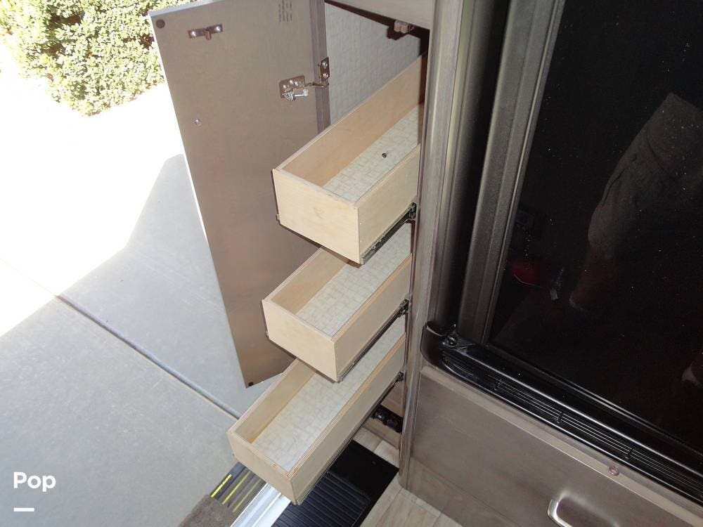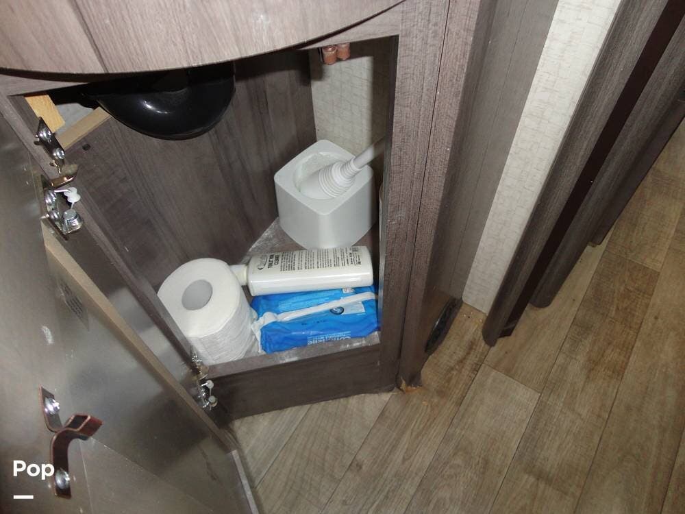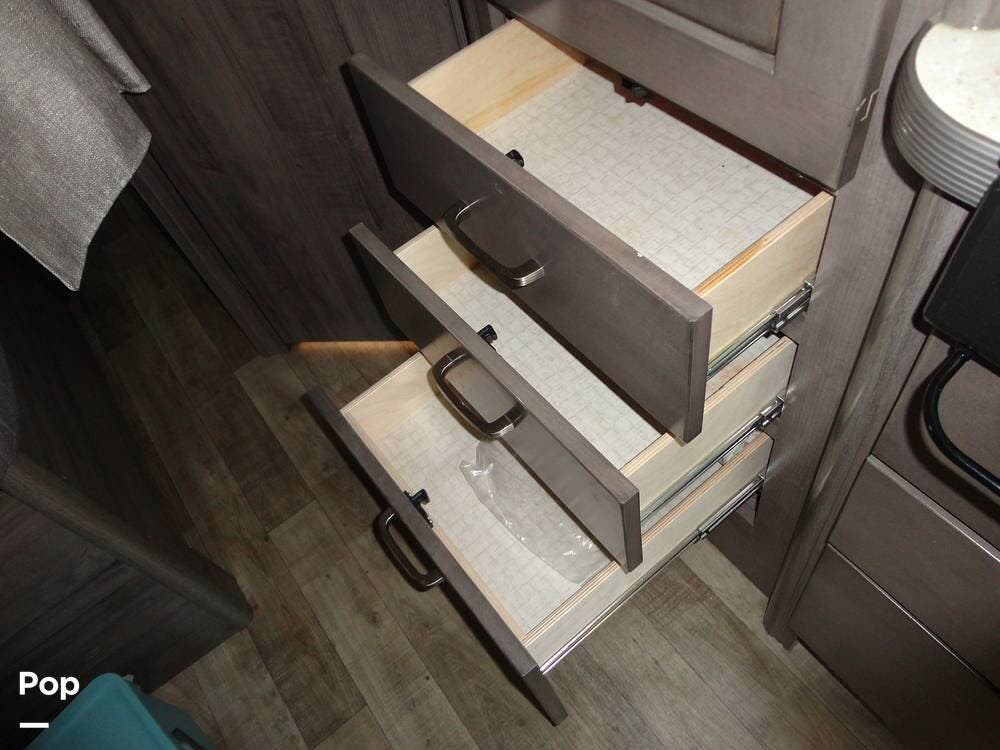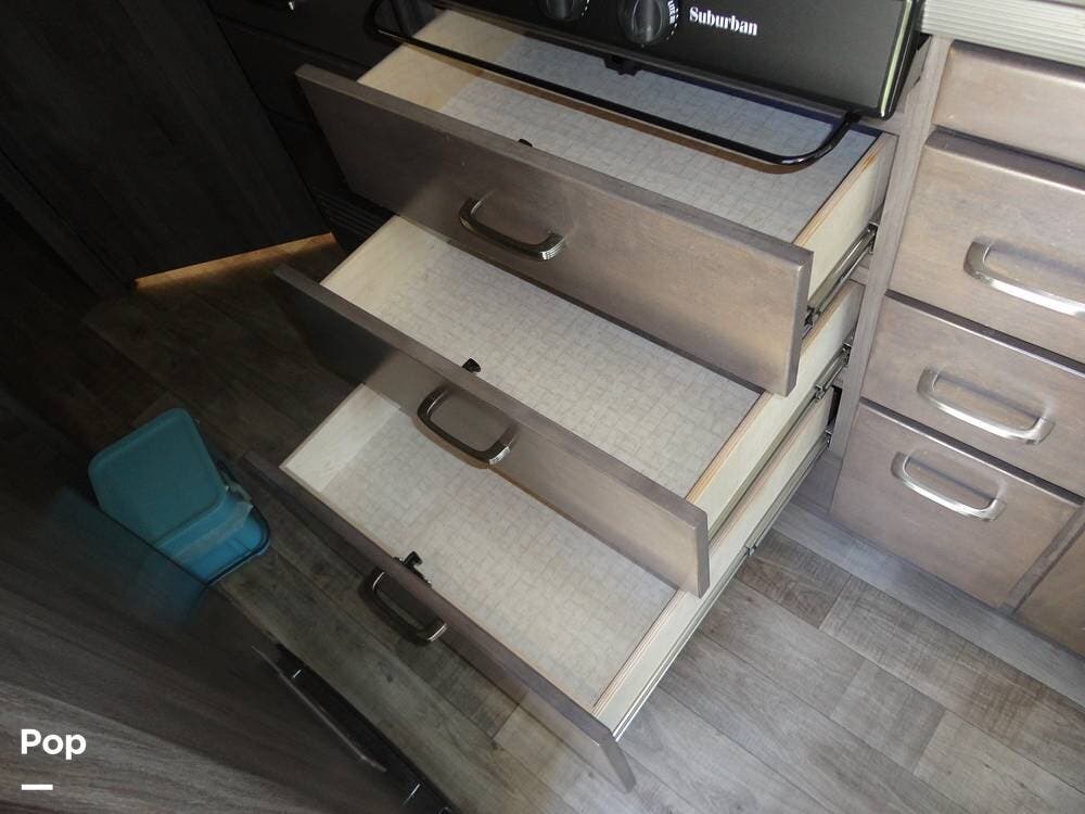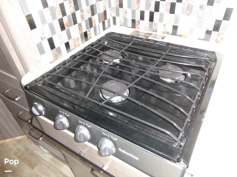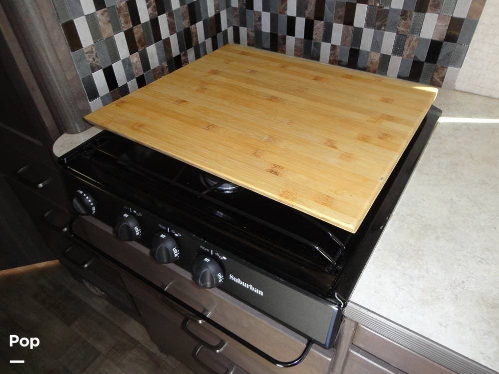This 2018 Fuse 23T comes with a multitude of extras that enhance your travel and camping experience. There are four rooftop solar panels (580 watts), two 100 amp-hour lithium batteries, a 3000-watt inverter, a TPMS, and side-view cameras for added safe driving.