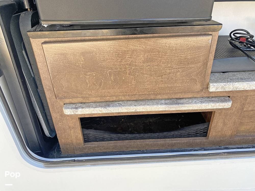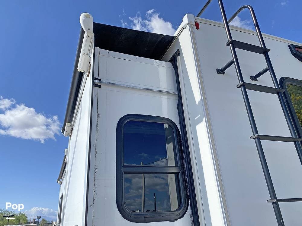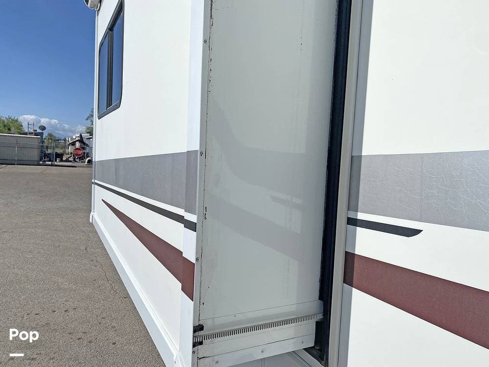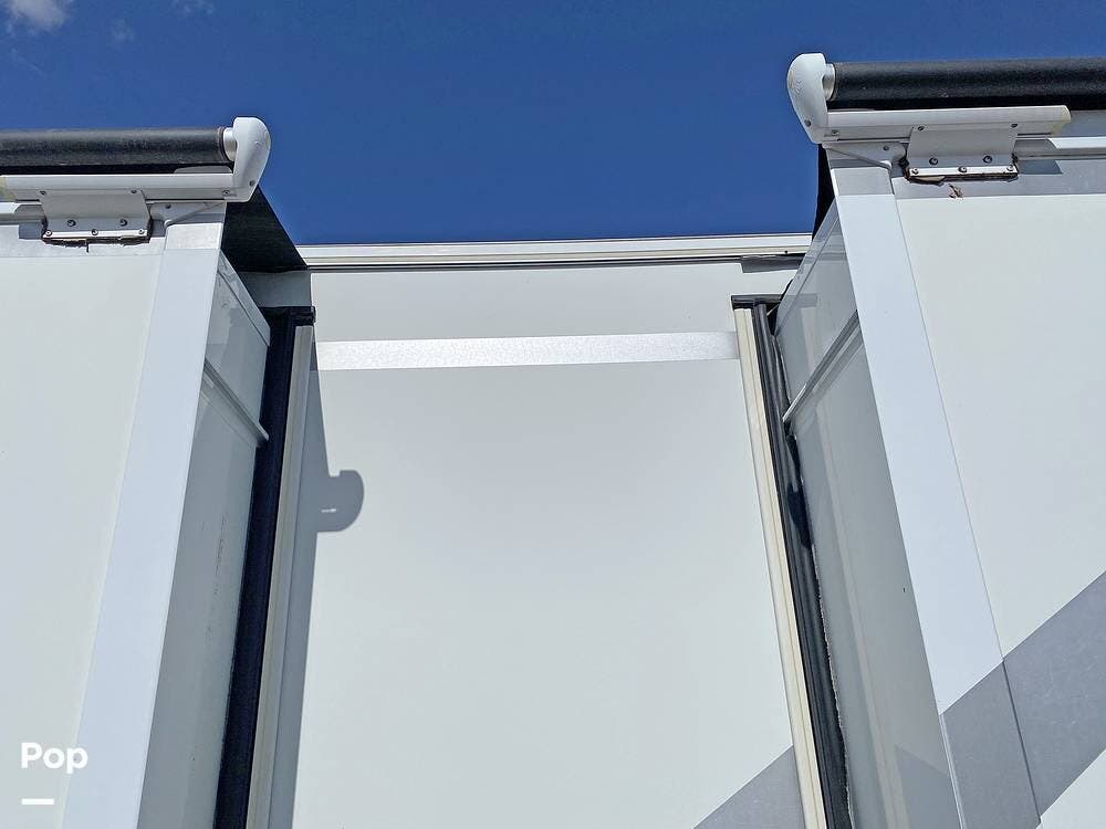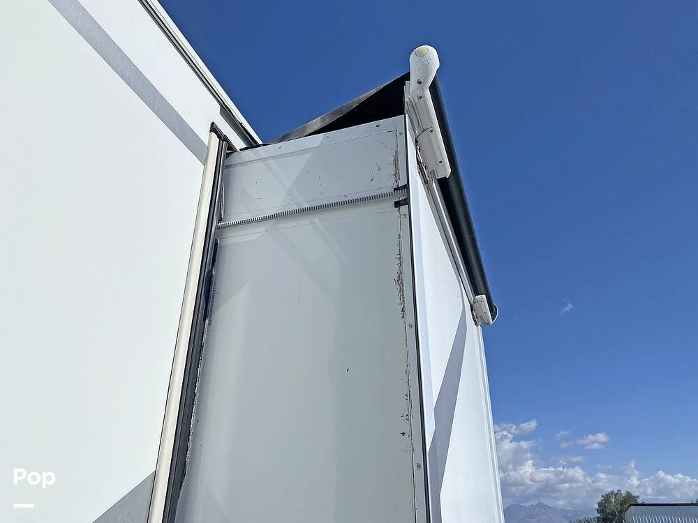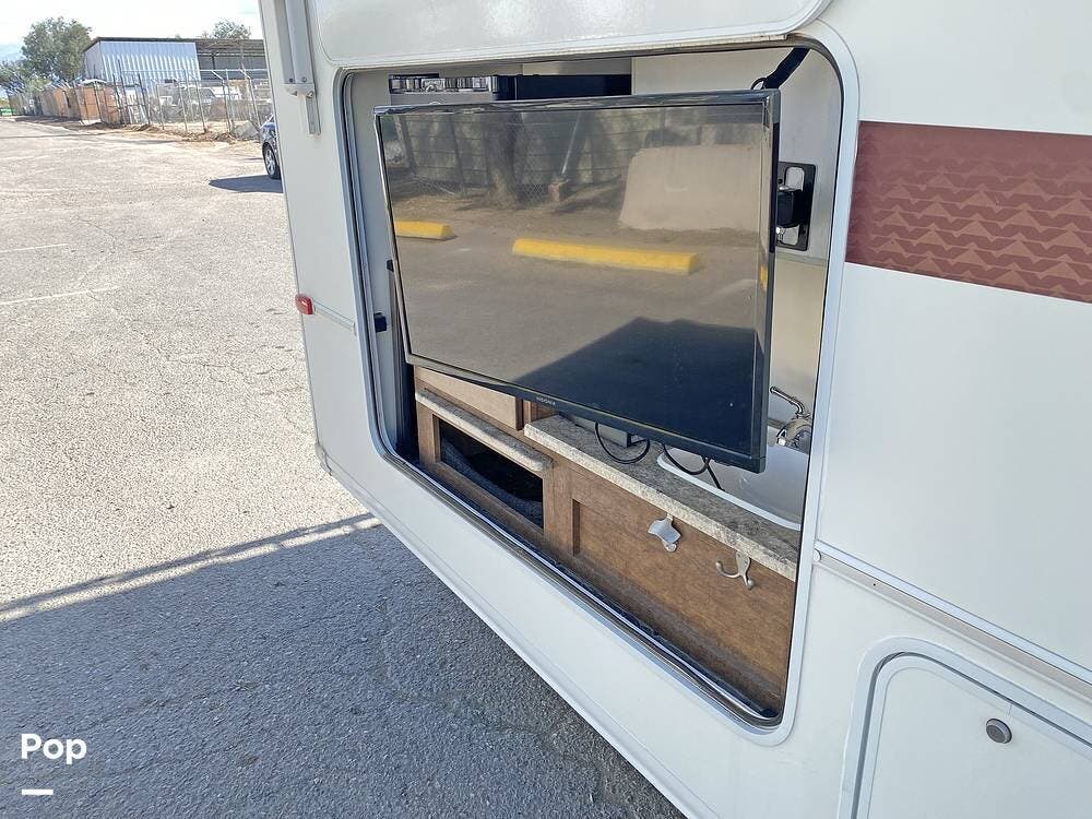 The exterior features an outdoor kitchen with a TV -- great for watching the game or your favorite shows with protection from the very wide awning.