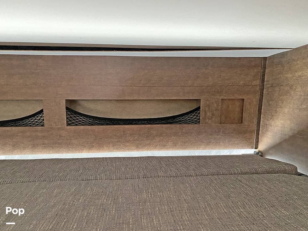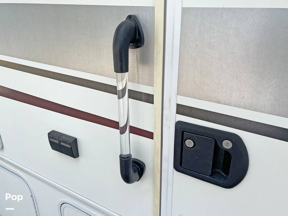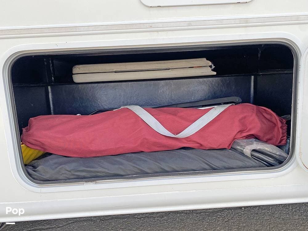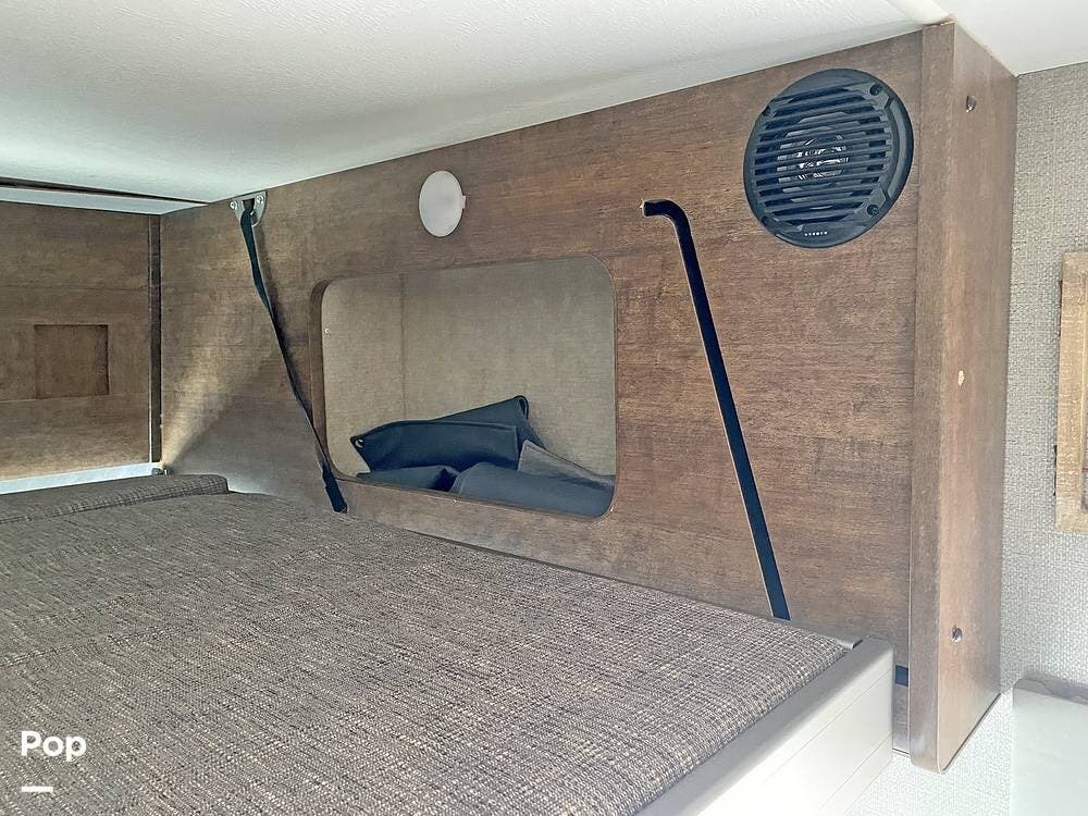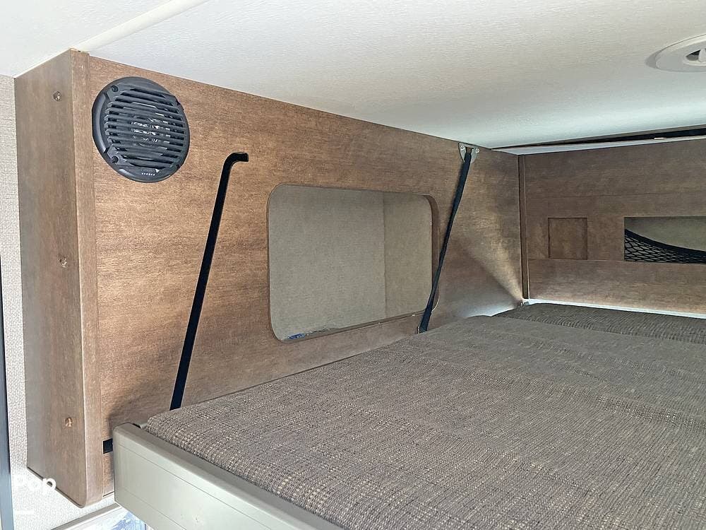 The interior is smartly designed and includes a forward, drop-down bunk, convertible dinette, and rear bedroom that comfortably sleeps six people.