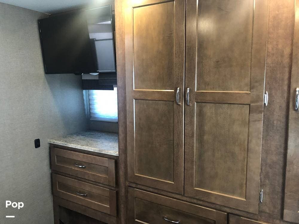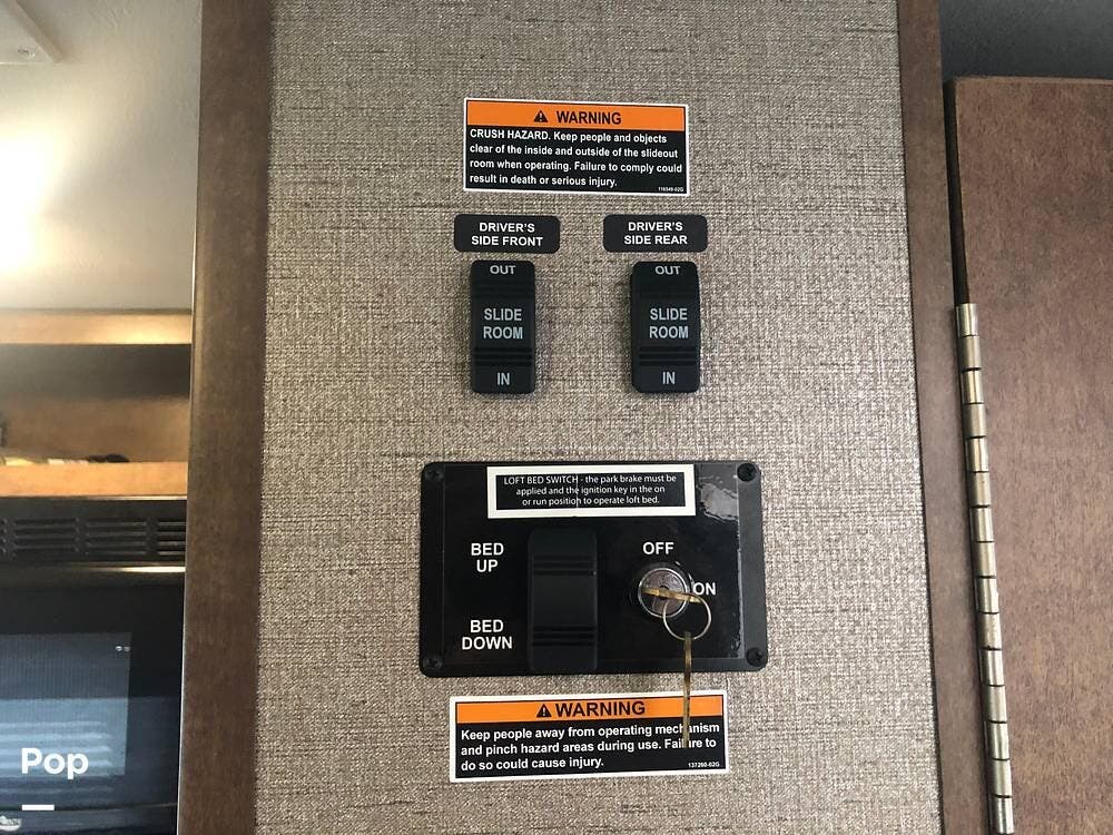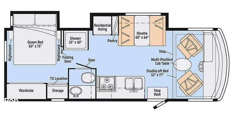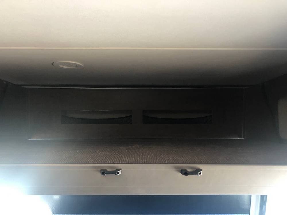 Overhead, a power drop-down StudioLoft bed provides additional sleeping accommodations, making it easy to host family or guests. The cab area is designed for convenience and safety, featuring a Mobile Eye camera system with lane sensors, a user-friendly dashboard layout, and upgraded front and rear LED lights for enhanced visibility.