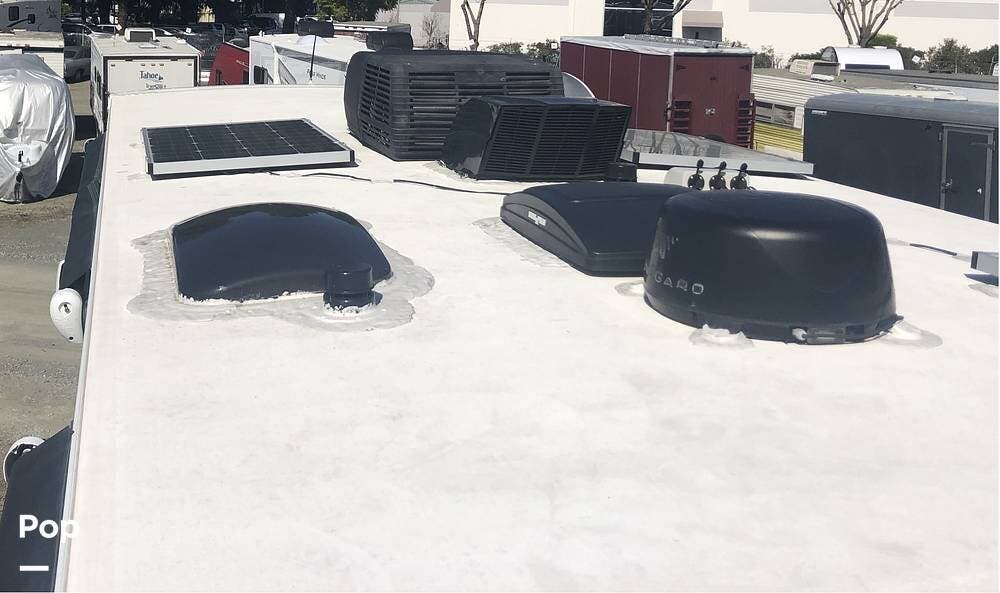 This motorhome is also well-equipped for off-grid adventures, thanks to three roof-mounted solar panels paired with AGM Optima batteries, providing ample power for extended stays without hookups. The upgraded Pioneer & JBL audio system delivers premium sound quality throughout the interior, making every journey more enjoyable.
