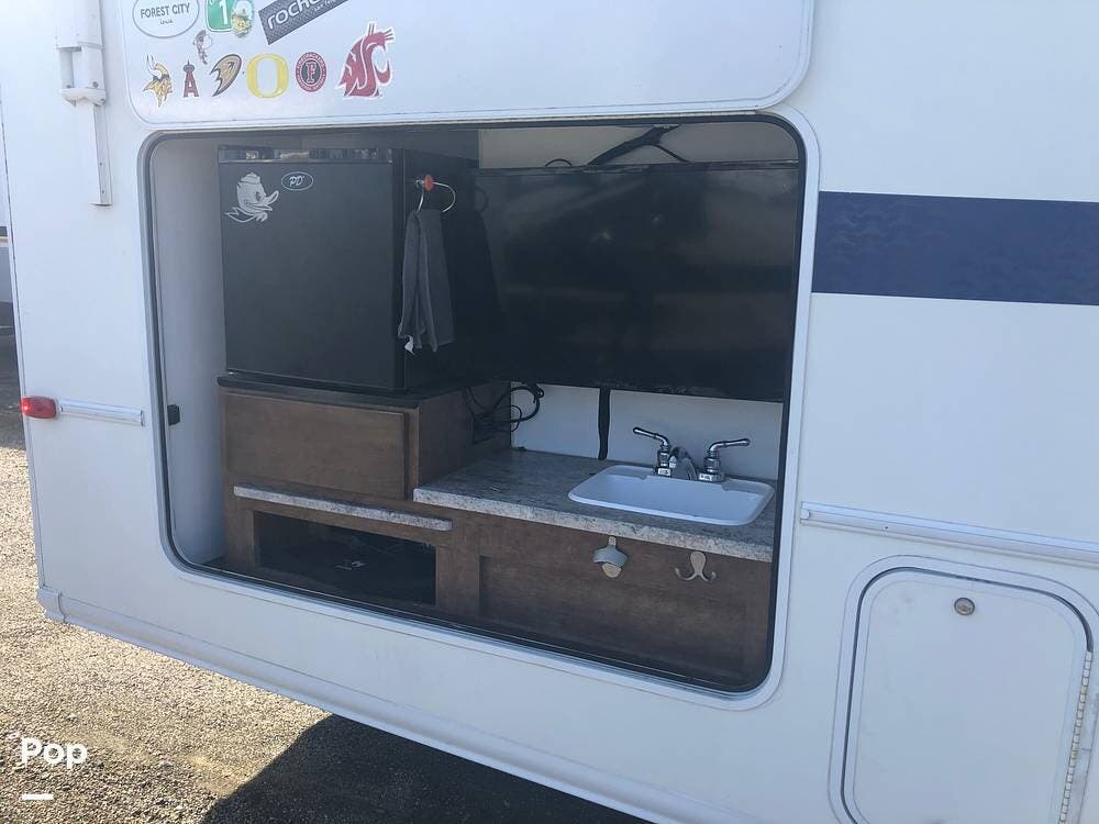 The exterior of this Winnebago Intent 26M is equally impressive. It features the built-in Tailgate Package, including a sink, fridge, and outdoor TV. The easy-access LP tank system allows for convenient refills without the hassle of moving the motorhome. Whether setting up camp for a relaxing evening under the awning or taking advantage of the tailgate package, this RV is designed for both adventure and comfort.