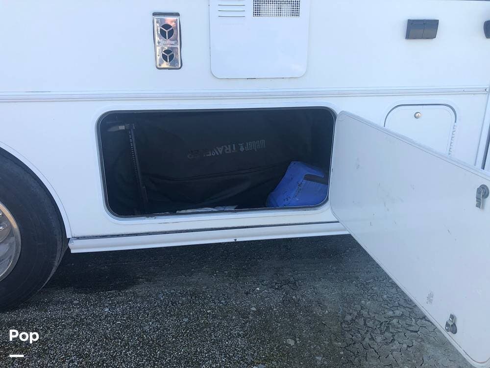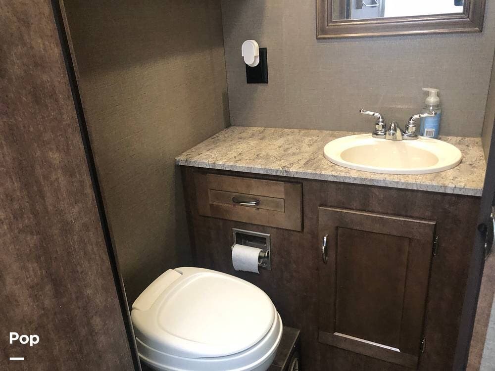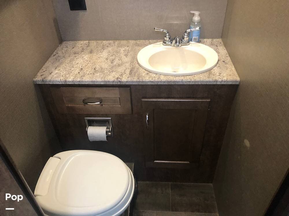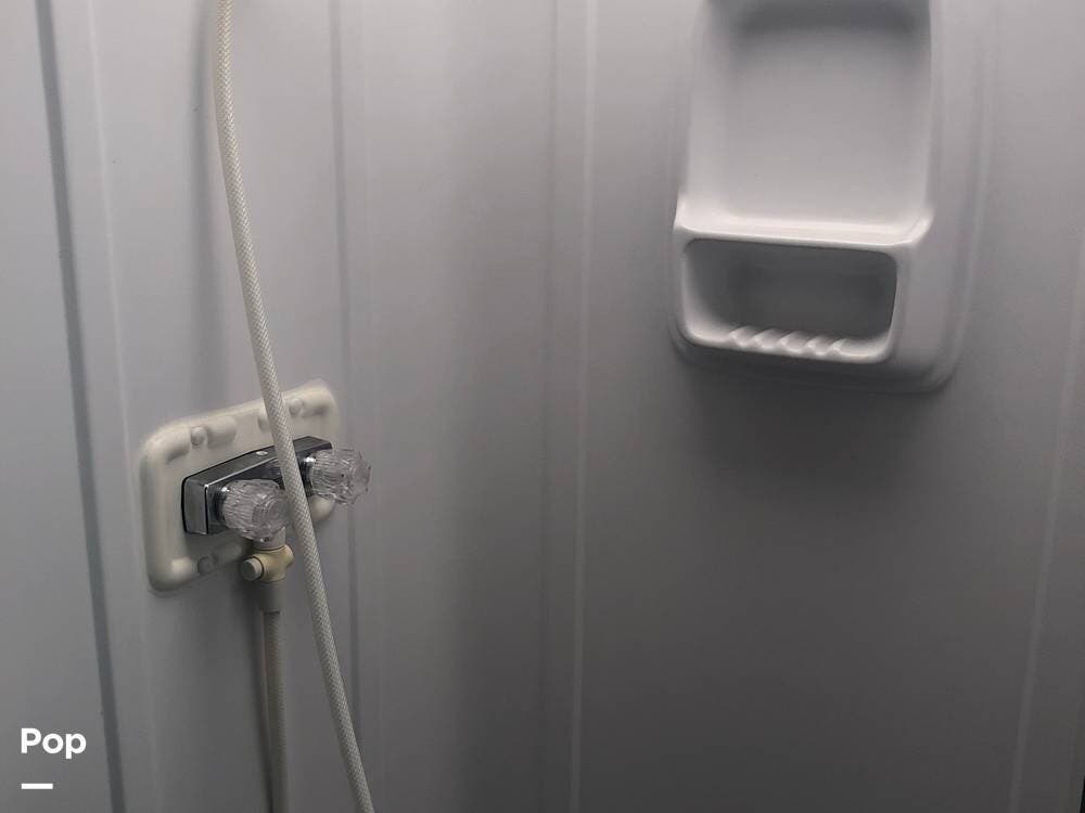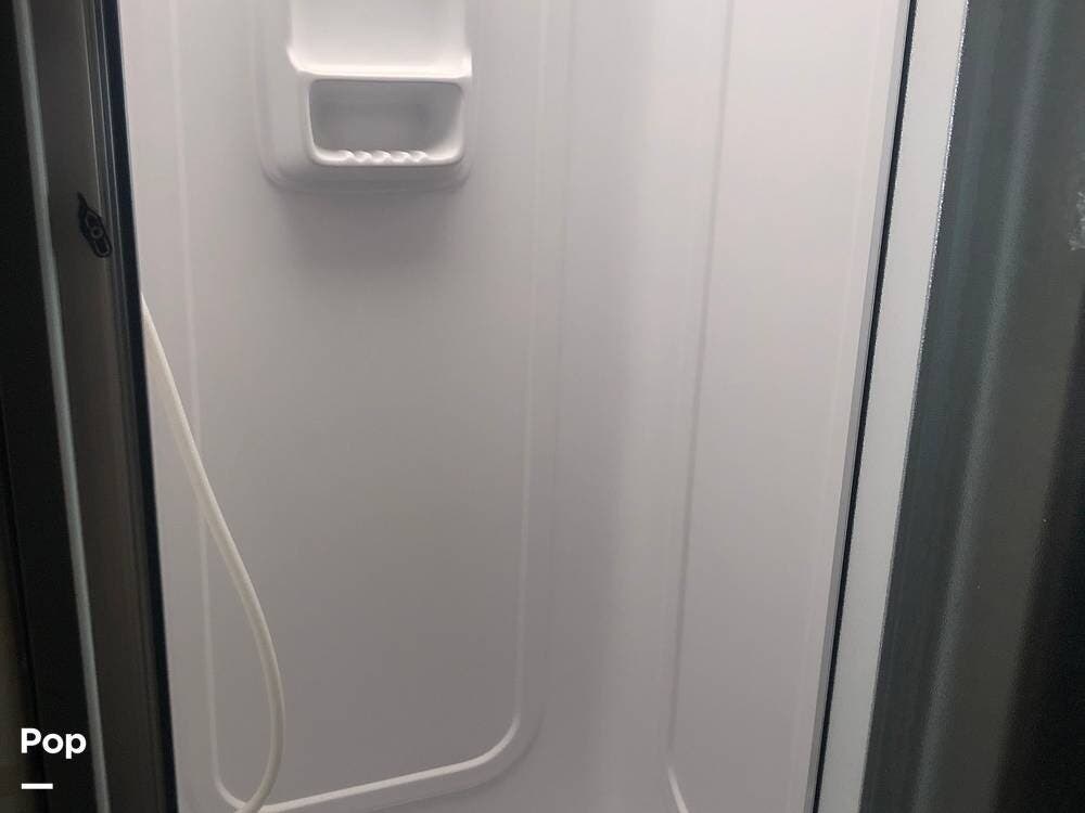 The split bathroom design is another highlight of this Intent 26M. The spacious shower, complete with a flexible showerhead and textured glass door, is separate from the toilet and vanity area, providing privacy and ease of use for multiple occupants. This arrangement is perfect for families or traveling couples who value convenience.