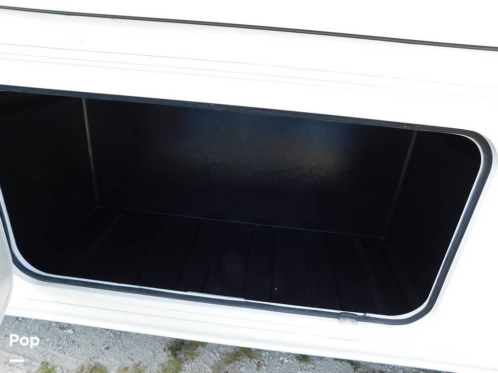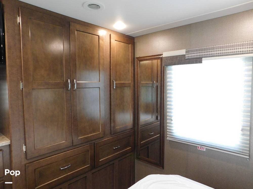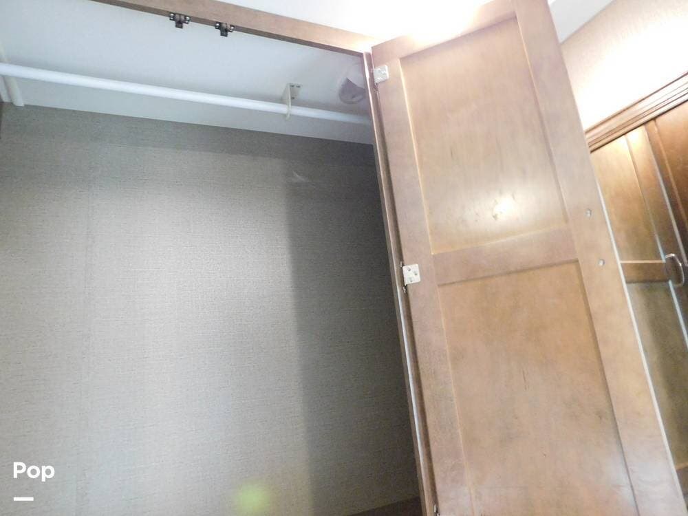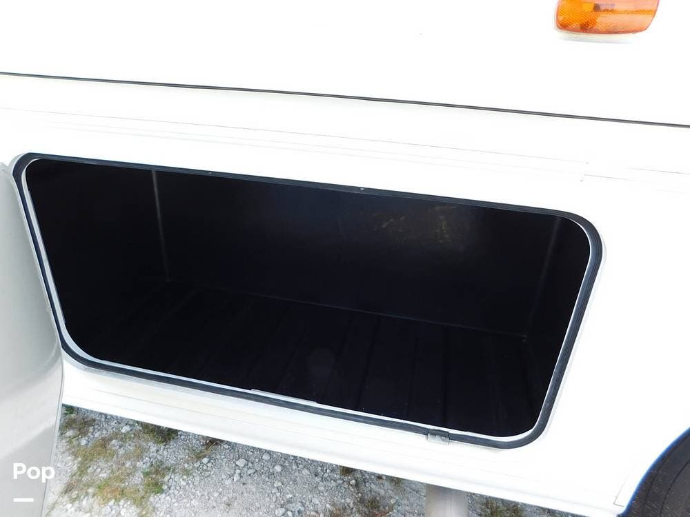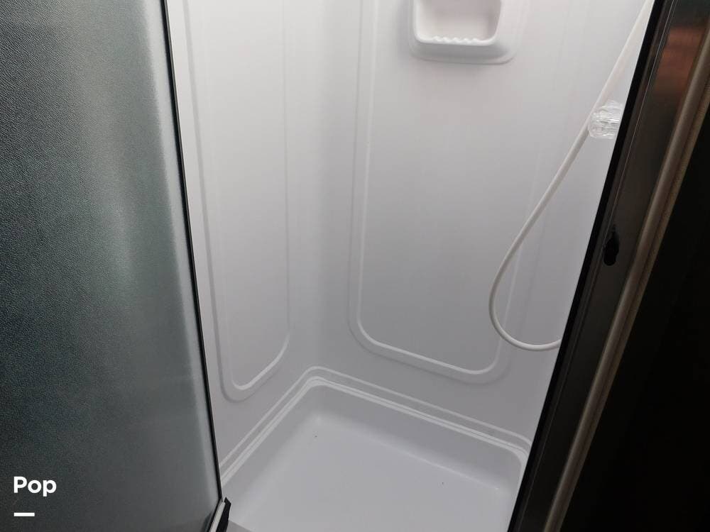 The bathroom is divided so that someone can shower without tying up the bathroom. There is ample storage in the bedroom closets and under the bed, as well as a removable table between the captain's chairs.