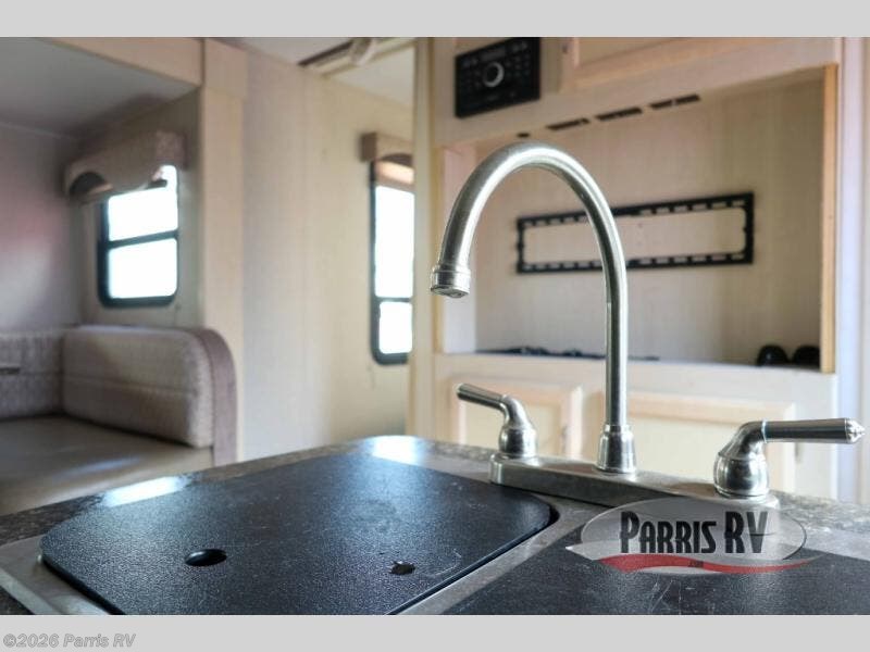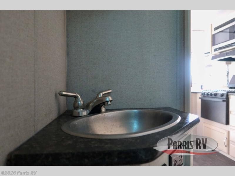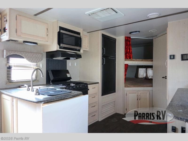 Your larger family will enjoy camping in this Minnie travel trailer where eight people can sleep comfortably. The single slide out u-shaped dinette creates a more open foot traffic space for moving about, and is a great spot to enjoy a family board game or game of cards. You will find double bed bunks conveniently located next to the rear corner bath for children to have quick access at night. The outdoor kitchen is also a handy feature for any camping family allowing them the choice to spend as much time outside when possible. This outdoor kitchen features a two burner cook-top, single sink, and exterior refrigerator. With a family of eight, a large breakfast might actually require two people cooking so the second cook-top can be utilized quite easily out under the awning. Or, after dining outdoors on a beautiful day, the added sink is perfect for cleaning up after a yummy meal.