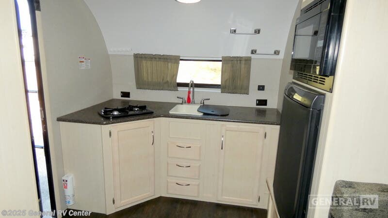 Winnebago Industries Towables Minnie Drop 1790 teardrop highlights: Rear Kitchen Single Slide U-Shaped Dinette Queen Bed Wet Bath Imagine this Minnie Drop 1790 hitched up to your tow vehicle, and your dog in the front seat. Now you are ready for fun in the great outdoors with your best buddy or even a few friends. You might decide to relax under the power awning, cook dinner in the rear kitchen, or even watch TV while sitting at the U-shaped dinette. You have plenty of storage for your things in the wardrobe and pantry, plus several other options, and sleeping accommodations for four. Hitch up this teardrop trailer and head out! With each Minnie Drop teardrop trailer by Winnebago Industries Towables you will find modern conveniences such as a bathroom and kitchen appliances, all in an easy to tow trailer. You will also find a 19" TV for indoor entertainment, USB charging ports for your electronics, and solar charger prep for those off-grid types. Come choose your favorite model today!
