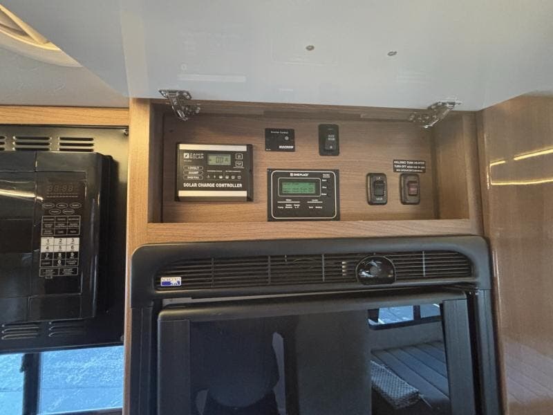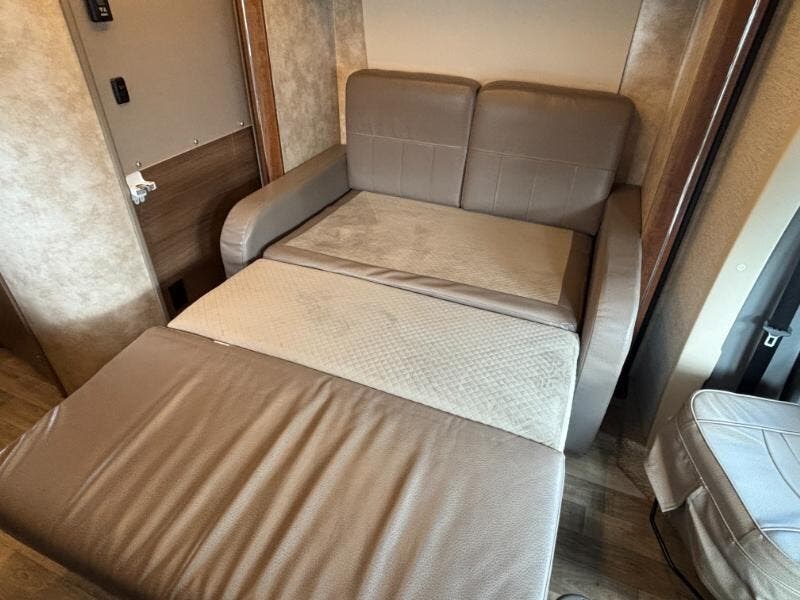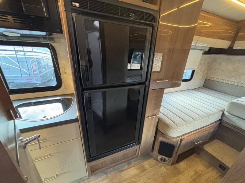 The 2018 Winnebago Navion 24V is a versatile, compact Class C motorhome built on a robust Mercedes-Benz Sprinter Chassis. This nimble RV combines practicality and luxury, making it an excellent choice for adventure seekers looking to travel in comfort and style. **Engine and Drive:** - 3.0L 6-Cylinder Turbo Diesel Engine - 188 horsepower - 5-Speed Automatic Transmission with Tip-Shift - 220-Amp Alternator - Hydraulic ABS Brakes - Adaptive ESP Technology - Stainless Steel Wheel Liners - Front and Rear Mud Flaps - 5000# Hitch with 7-Pin Connection **Cab and Safety Features:** - Pleated Windshield Blinds - Recline, Swivel, and Slide Cab Seats - Power Door Locks with Remote Control - Power Windows and Defrost Side Mirrors - 6-inch LCD Touchscreen Monitor with Rear Camera - DVD, iPod, MP3, Bluetooth, SiriusXM, Spotify, AppRadio One - Cruise Control - Privacy Curtain **Living Spaces:** - Power Patio Awning with LED Lighting ? - Automatic Entry Steps - Stepwell Light and Entry Assist Handle - Durable Vinyl Flooring - Soft Vinyl Ceiling - LED Lighting throughout - Tinted Windows - MCD Solar Blackout Roller Shades - Sofa Sleeper option in the 24V model **Dining and Kitchen:** - Spacious Pantry - Galley Mini Blinds - Laminate Countertops - Stainless Steel Sink with High Rise Faucet - Cold Water Filtration System - Norcold Refrigerator Freezer - 2-Burner Cooktop with Glass Cover - Convection Microwave Oven **Electronics and Entertainment:** - Systems Center - Digital Amplified HDTV Antenna - 28-inch and 32-inch HDTVs (varies by model) - AM/FM/CD/DVD Bluetooth Stereo with Outdoor Speakers ?? - Satellite System Ready **Sleeping Arrangements:** - Twin Bed configuration which can convert into a King Flex Bed - Comfortable Foam Mattress - MCD Blackout Roller Shades for enhanced privacy **Bathroom Features:** - Medicine Cabinet - Flexible Shower Head with Skylight - Porcelain Toilet ?? and Retractable Shower Screen - Power Vent with Rain Cover **Mechanicals and Utilities:** - Battery Disconnect Switch - Two 100w Solar Panels for sustainable energy - Dual Battery Charge Control - 1000w Pure Sine Inverter - 3.6k Onan MicroQuiet LP Generator - 30-Amp Service Cord with 45-Amp Converter Charger - GFCI Receptacle - 15,000 BTU AC System (not available for the 24D) - Water Heater Bypass and Tank Flush System **Coach Construction:** - Premium High Gloss Exterior - One-Piece Fiberglass Roof with Roof Access Ladder - Lighted Storage Compartments for convenience - Outdoor Shower for extra utility The 2018 Winnebago Navion 24V perfectly blends comfort with functionality, providing a reliable and enjoyable travel experience whether you're setting out on a weekend getaway or a cross-country road trip. ???